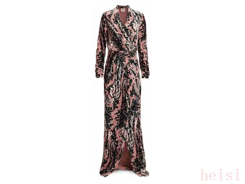 ↗充滿繁復(fù)印花的禮服長裙充滿民族感,經(jīng)典款型時髦優(yōu)雅