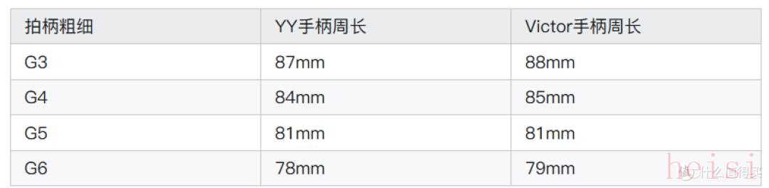尤尼克斯(YY)和勝利(Victor)給出的球拍手柄數(shù)據(jù)有略微的差別