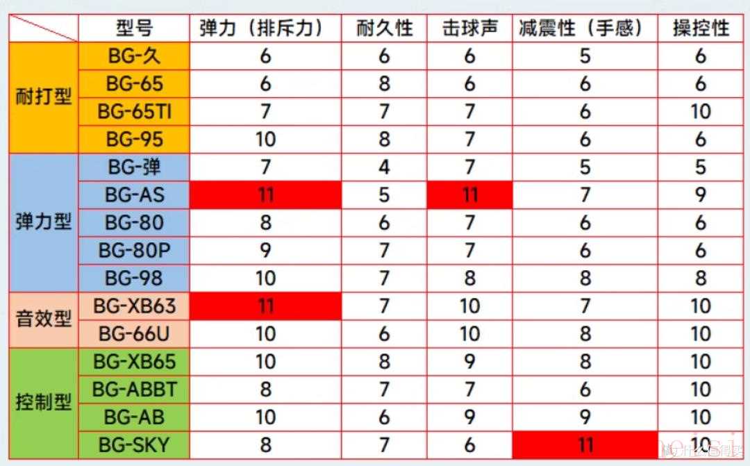 尤尼克斯羽毛球線,數(shù)值越大表示該項(xiàng)性能越優(yōu)秀