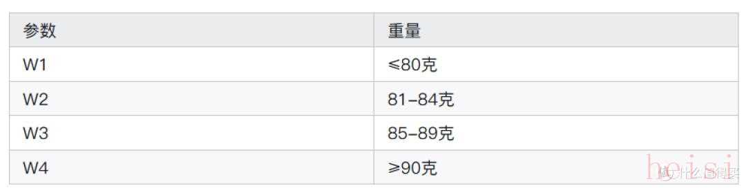 李寧羽毛球拍用W表示重量。W1對(duì)應(yīng)5U,W2對(duì)應(yīng)4U,W3對(duì)應(yīng)3U,W4對(duì)應(yīng)2U。