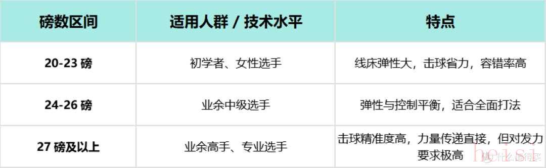 拉線磅數(shù),體現(xiàn)的是球線的張力大小。磅數(shù)越高,球線越緊繃,擊球感偏硬;磅數(shù)越低,球線松弛,彈性則越好。