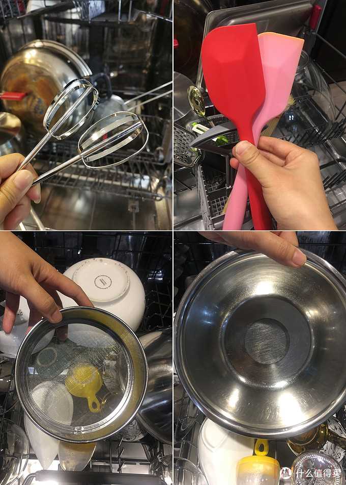 從上面的各種清潔對比圖片可以看出,其實洗碗機能夠帶來的洗滌效果以及清潔所涵蓋的品類都是比較全面的,并且洗碗機在應(yīng)對一些特殊物品時,其清潔效果會比手洗更好。比如菜籃子、漏勺、瓜絲刀等密集多孔的物品,因為洗碗機是通過增壓水流的沖刷來完成洗滌工作,對于這些多孔或者孔徑小的物品而言,水流能密集的清洗到每一個位置,將長期沉淀的污漬帶走。如果是手洗,抹布擦不到、鋼絲球也擦不到,最大的問題就是清潔不到位。