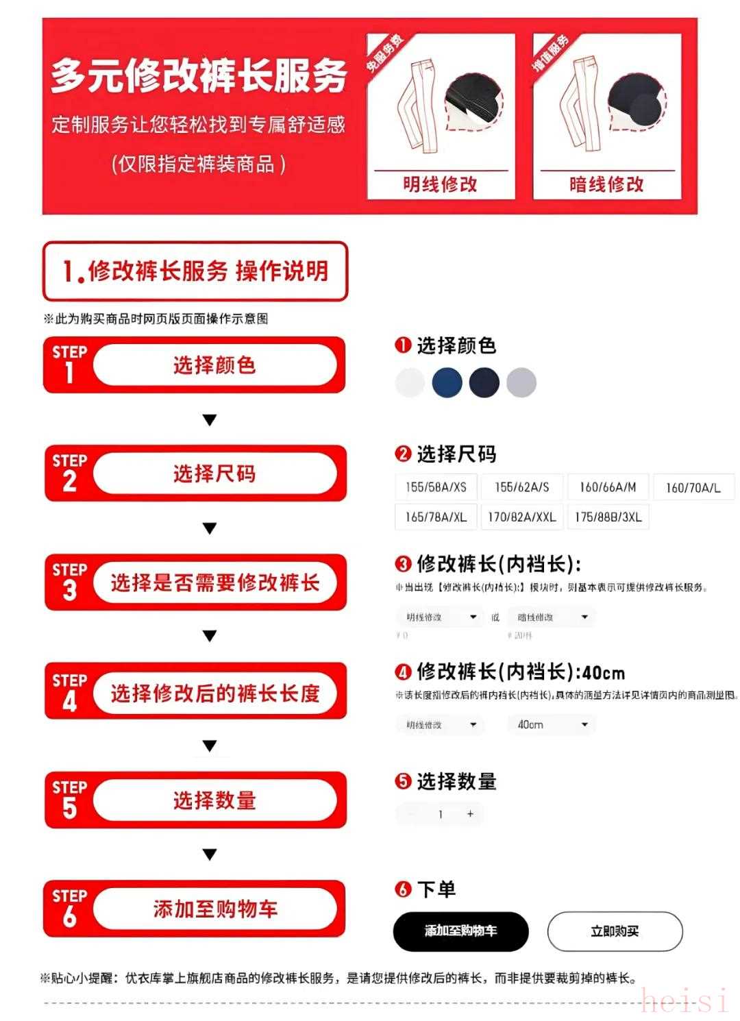 優(yōu)衣庫線上線下門店均提供提供免費(fèi)明線修改褲長服務(wù)。圖源優(yōu)衣庫官方旗艦店截圖