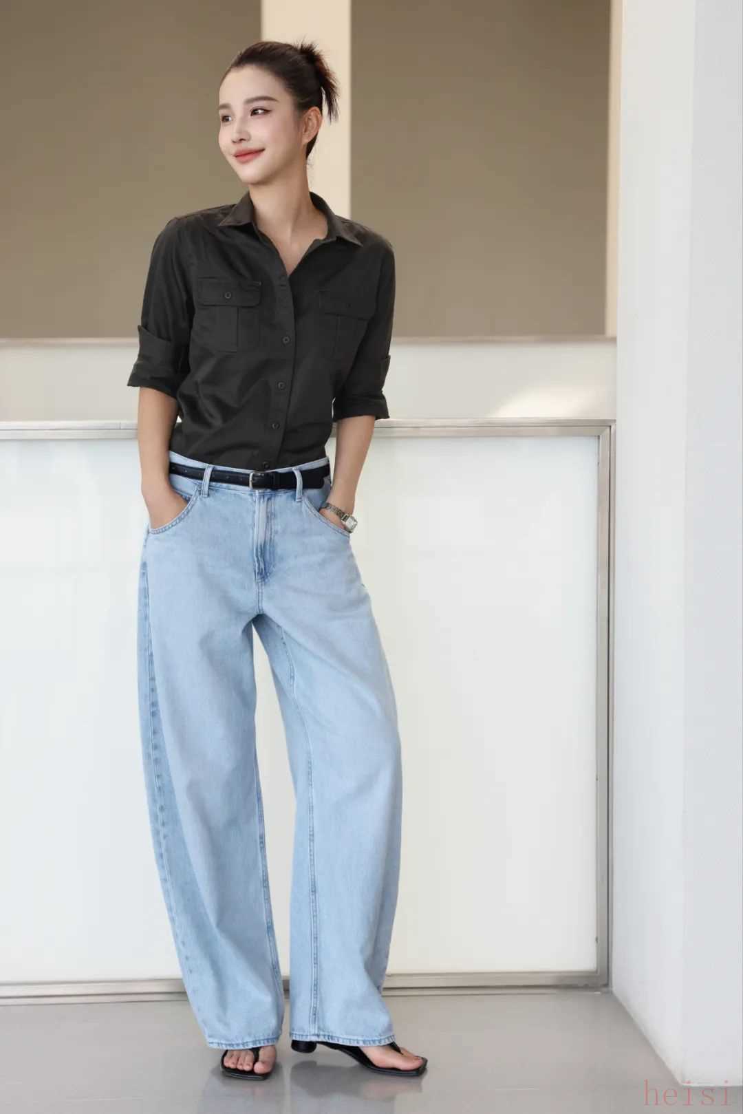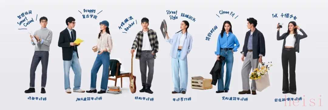 今年推出的5款彎刀褲,也是不斷優(yōu)化和迭代后的產(chǎn)品。比如針對(duì)早期牛仔褲偏硬、穿著不適的反饋,新一代彎刀褲特意改良面料,加入萊賽爾纖維,顯著提升柔軟度;從單純追求「寬松遮肉」的闊腿褲,升級(jí)到兼具舒適與修飾腿型功能的彎刀褲廓形。