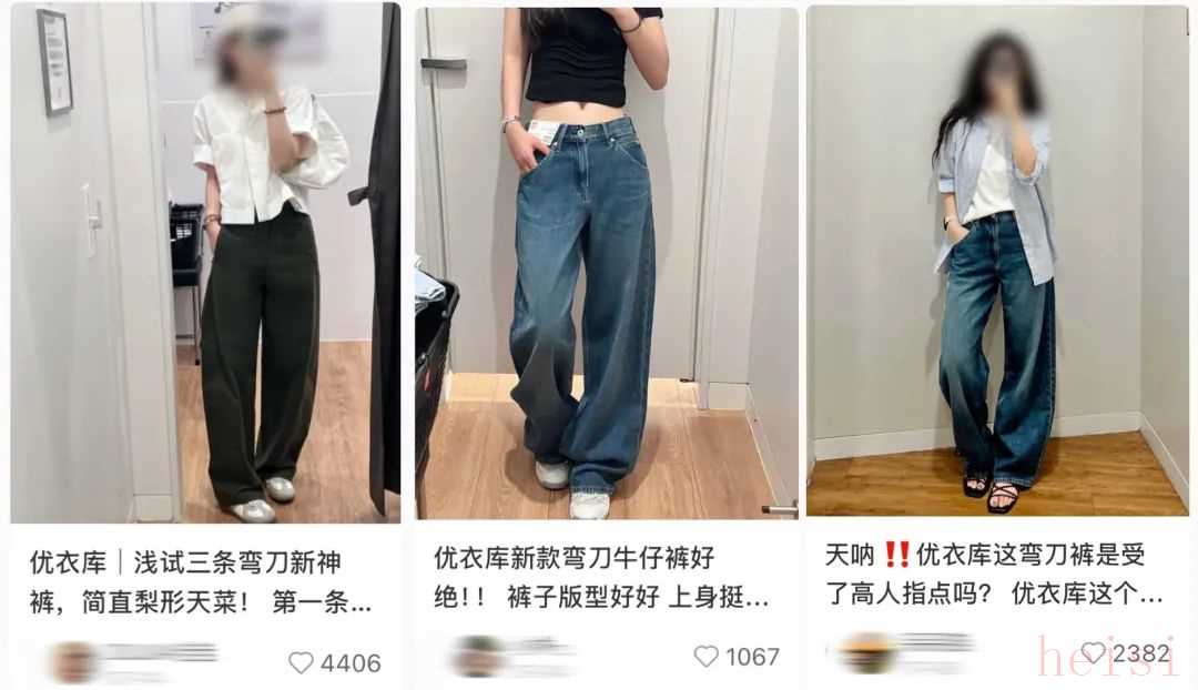 優(yōu)衣庫人氣款牛仔彎刀褲。圖源小紅書博主