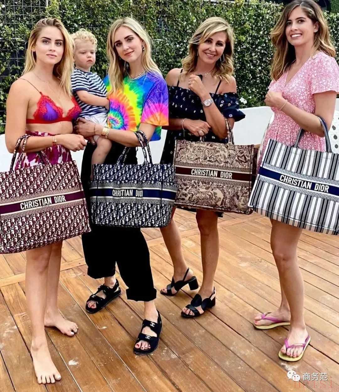 女士可能還會(huì)搭配著短款人造皮草和今年爆火的Fendi老花圍巾,手拎一只Dior booktote。上周辦公室小伙伴就同樣拎著一個(gè)booktote遭遇了接連撞款的局面。