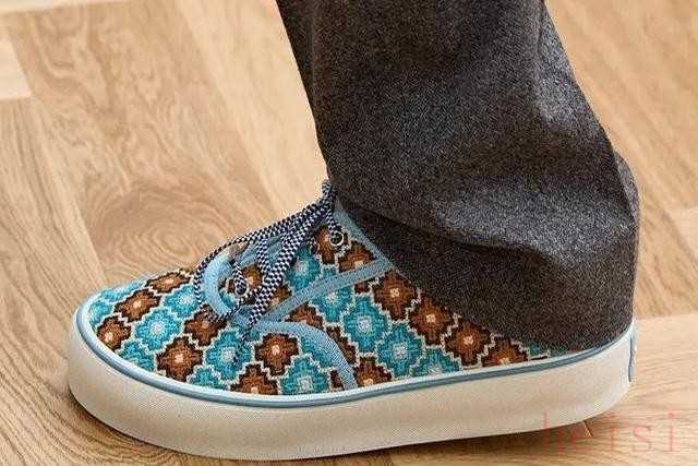 傳統(tǒng)刺繡配上熒光色登山扣,德比鞋綁帶換成粗麻繩,東西方對沖得明明白白。