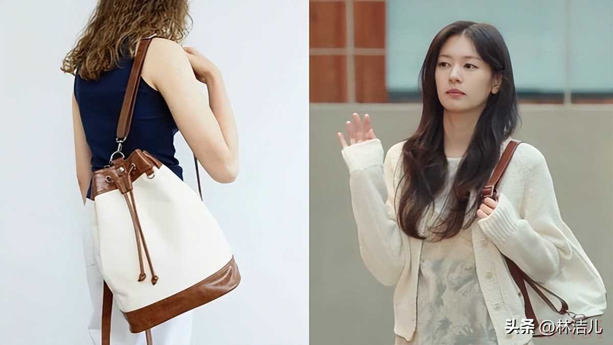 這身點(diǎn)贊度超高的造型,包包也是點(diǎn)睛之筆。米色帆布+焦糖配色+水桶設(shè)計(jì)=精致休閑感!品牌來(lái)自Fillin the blank,是泡菜國(guó)的一個(gè)小眾品牌,宋雨琦也是它家的粉絲,私服中出鏡過(guò)好幾款這個(gè)品牌的包包。這款水桶包完全不挑人,可以側(cè)背也可以當(dāng)做雙肩包,使得隨性感大大提升,加上容量極大,特別適合日常使用,搭配簡(jiǎn)單的牛仔褲+白T就能很好看。