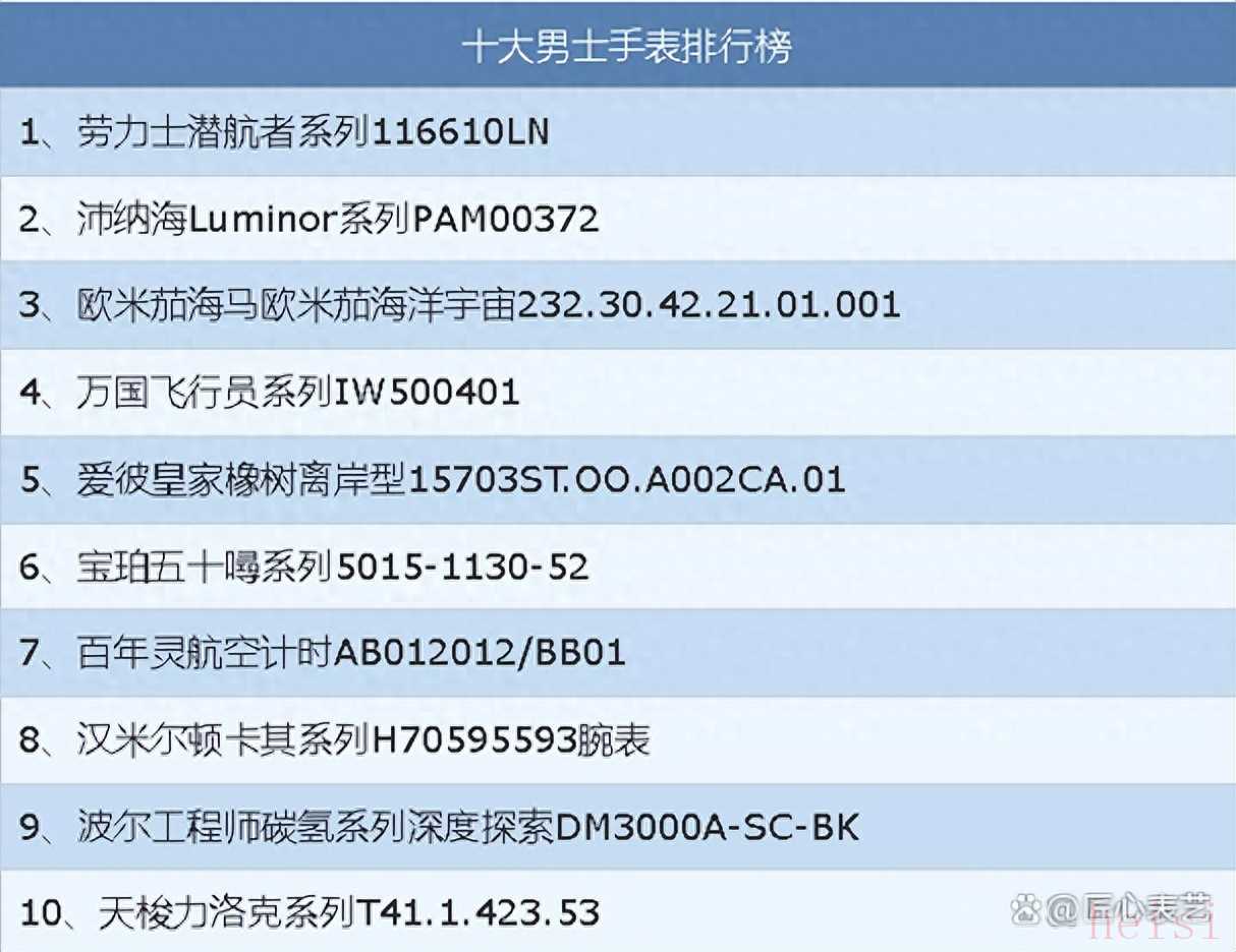 "十大男士熱門手表排行榜 (排名不分先后,側(cè)重代表性)"