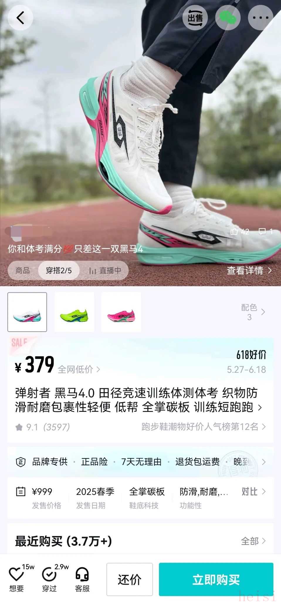 今年2月,彈射者“黑馬4.0”更是以優(yōu)秀的“質(zhì)價比”脫穎而出。隨即,阿迪達(dá)斯、李寧等大品牌也相繼跟進(jìn)這一趨勢。據(jù)相關(guān)經(jīng)銷商透露,僅“體測鞋”這一品類,就在得物APP有千萬級的銷售額度。