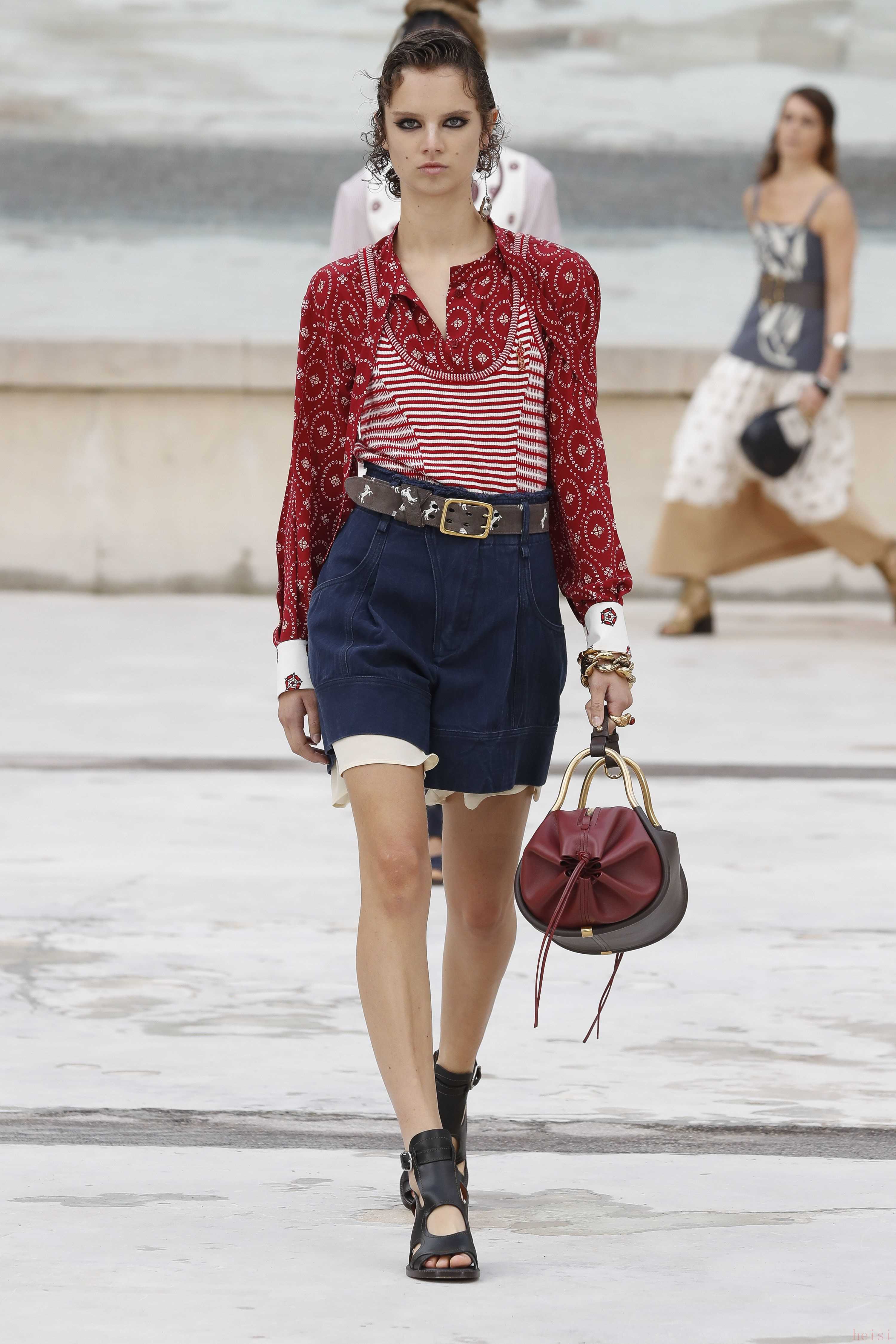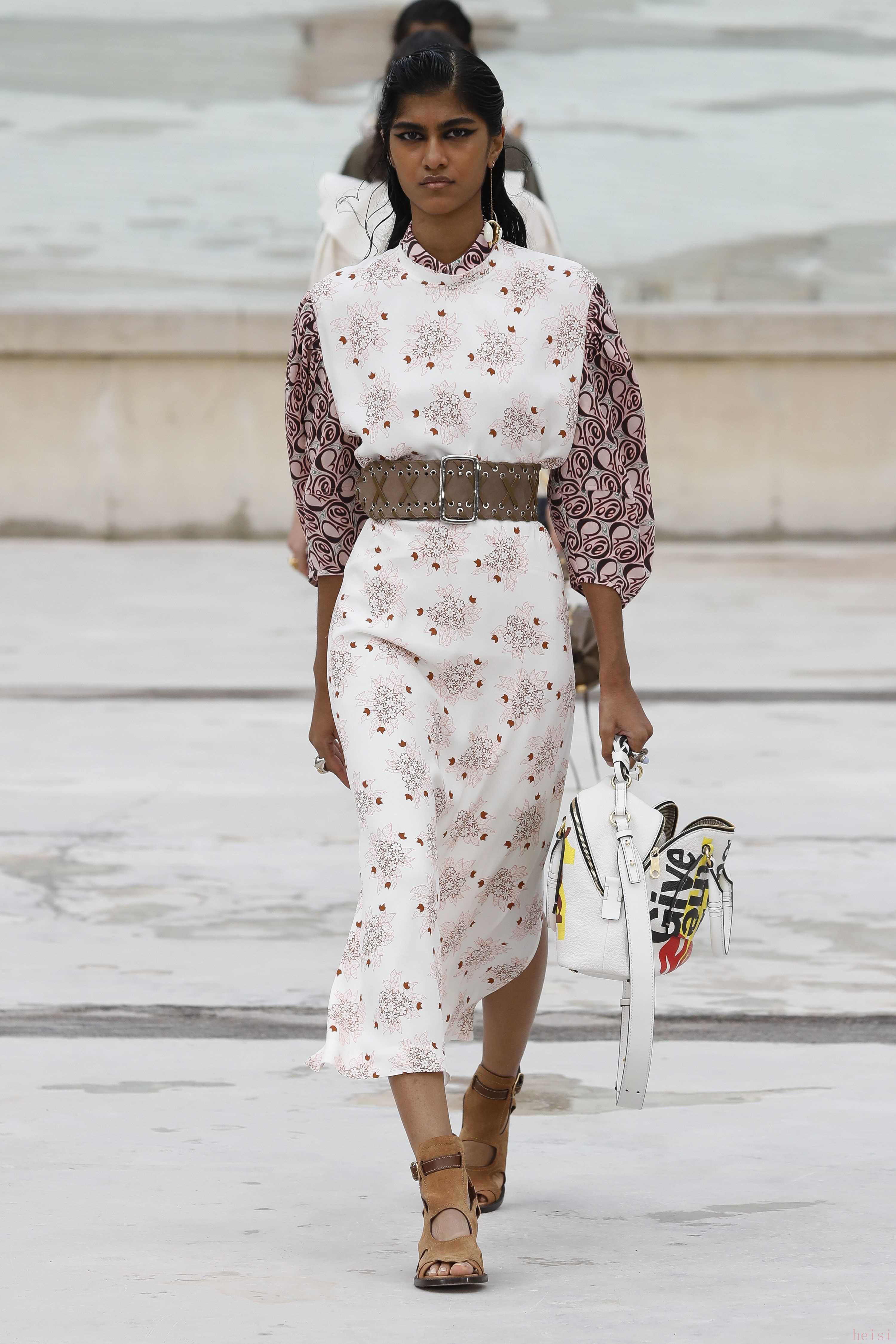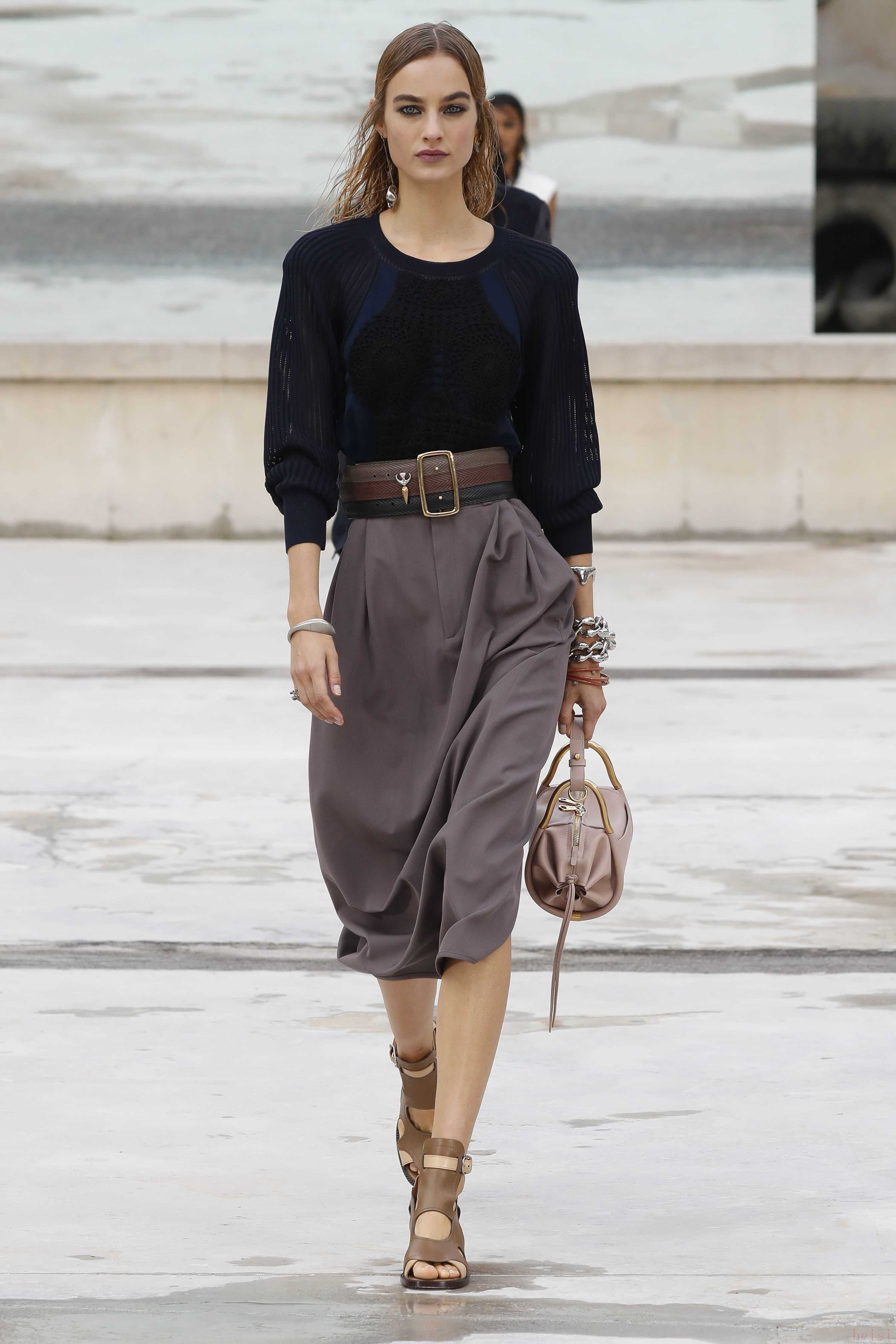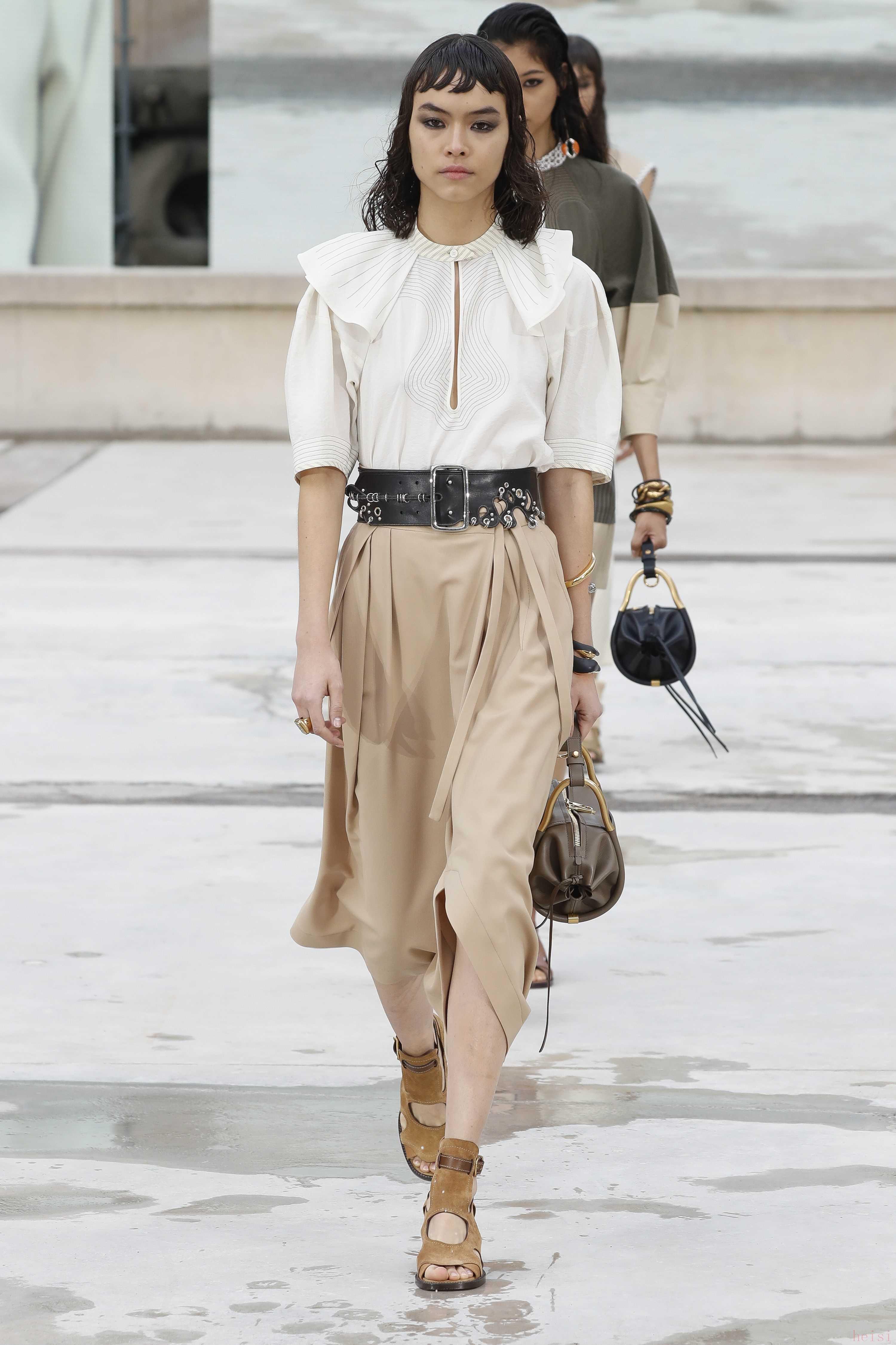 "配飾與鞋履:" 除了服裝,CHLOE的配飾(如包包、珠寶)和鞋履也是重要的組成部分,通常也會在時裝周上展示。