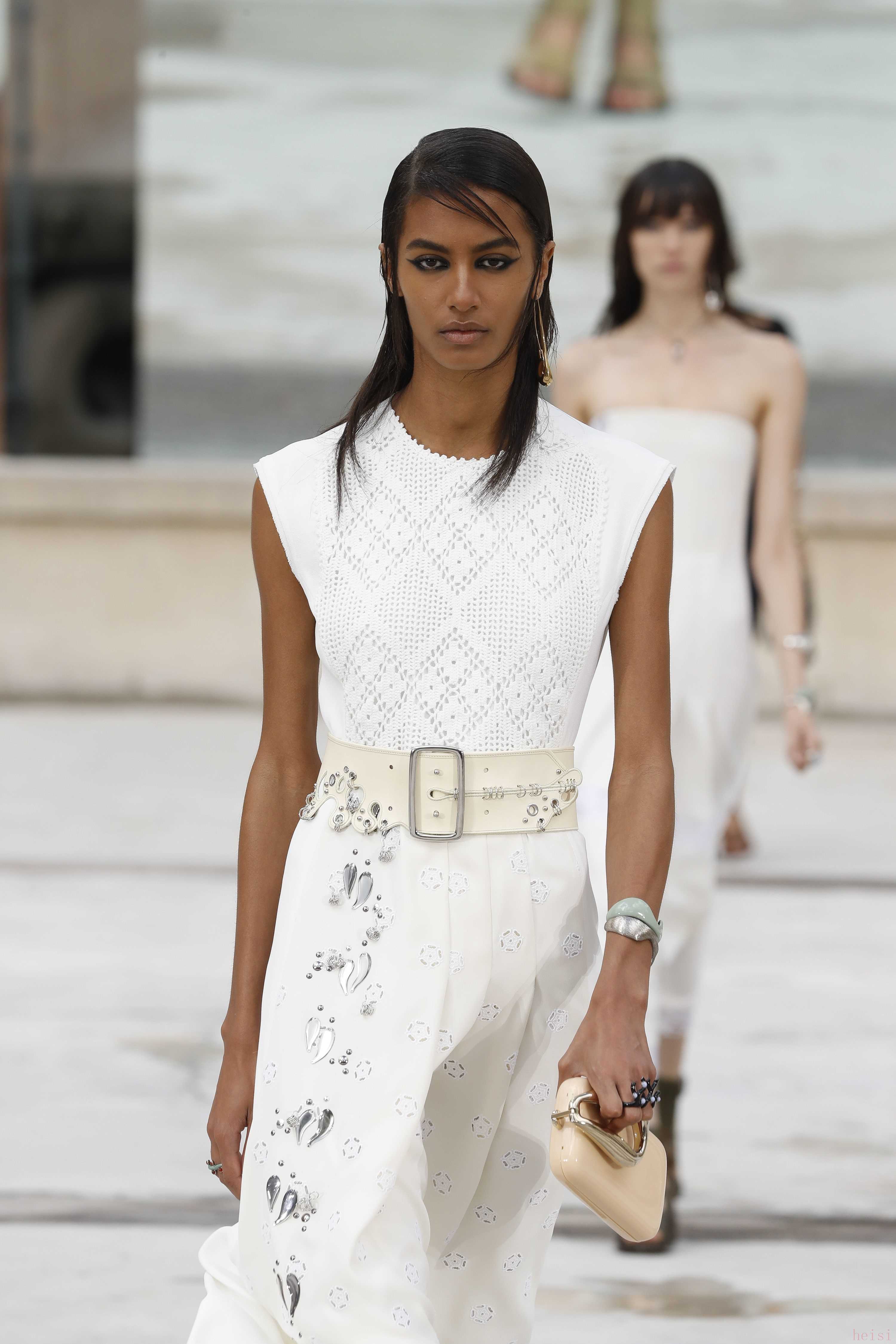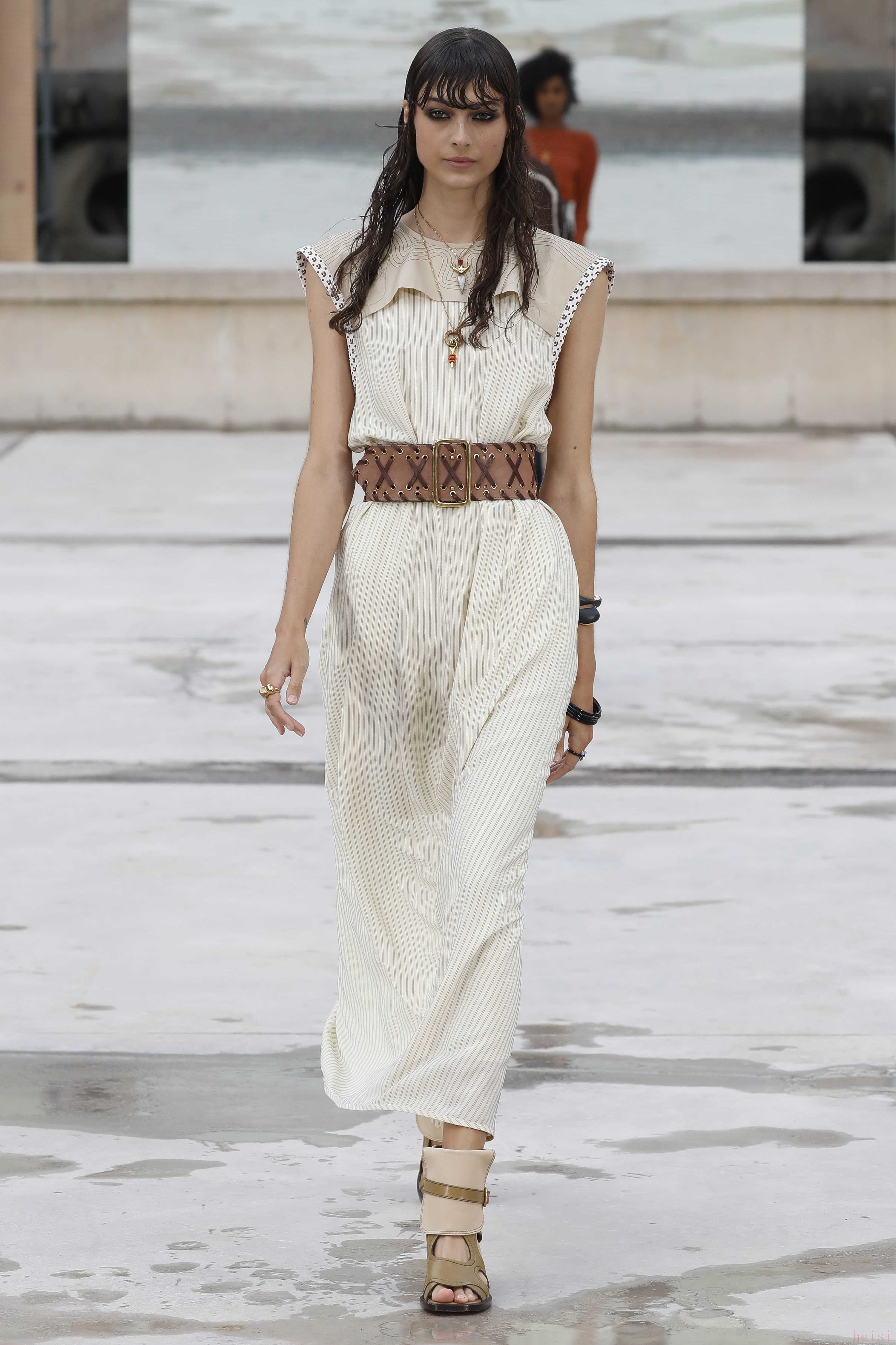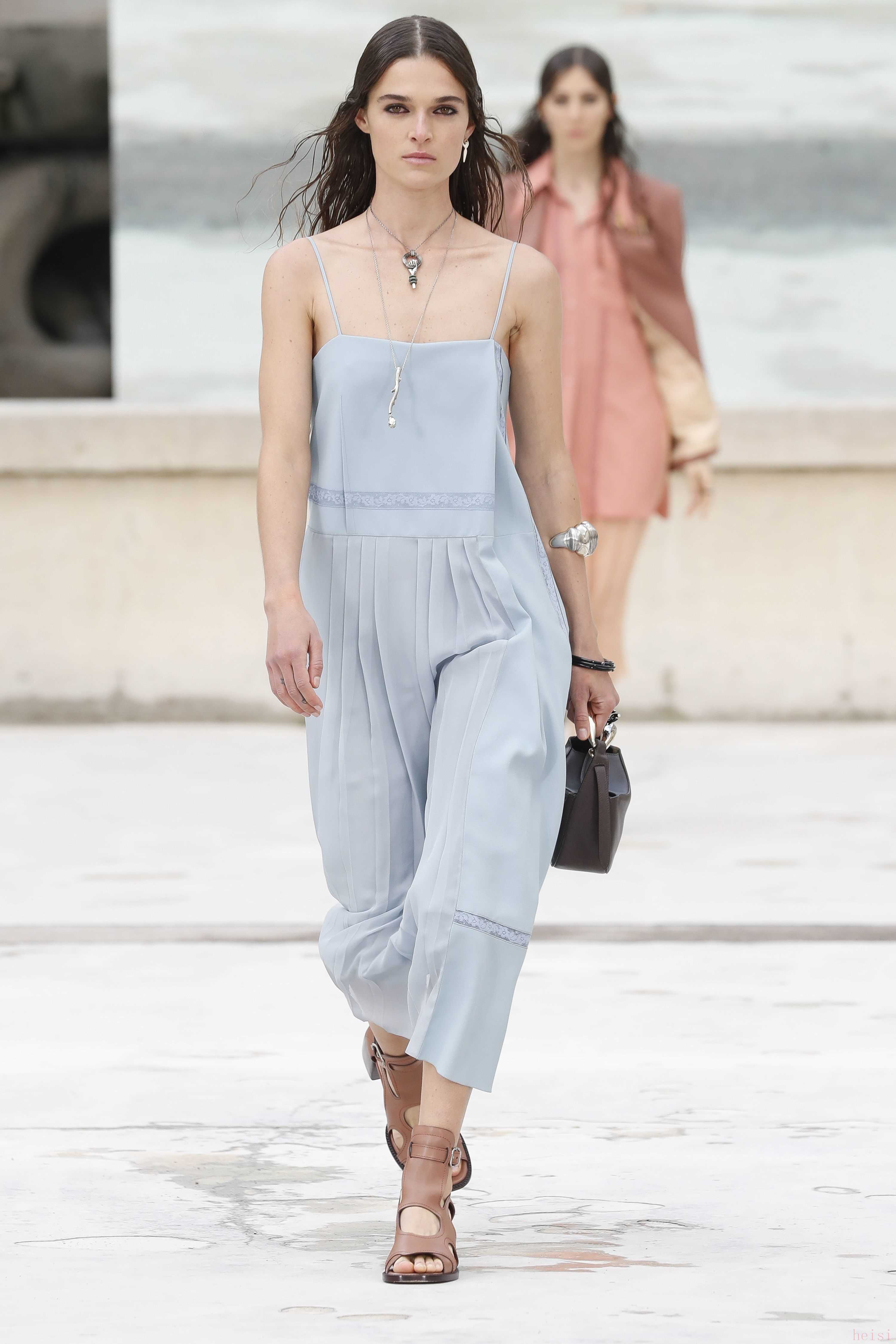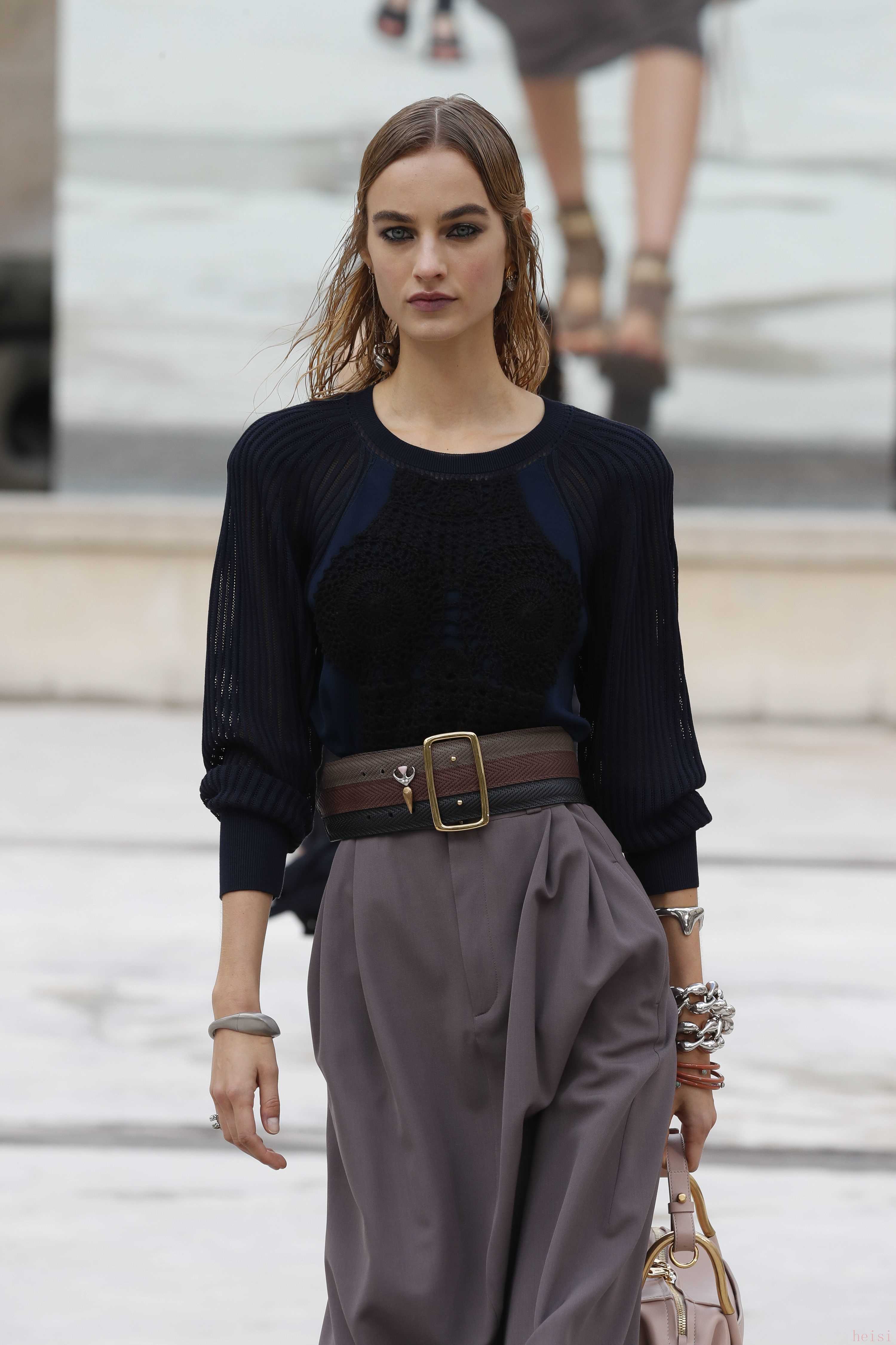"配飾與鞋履:" 除了服裝,CHLOE的配飾(如包包、珠寶)和鞋履也是重要的組成部分,通常也會在時裝周上展示。