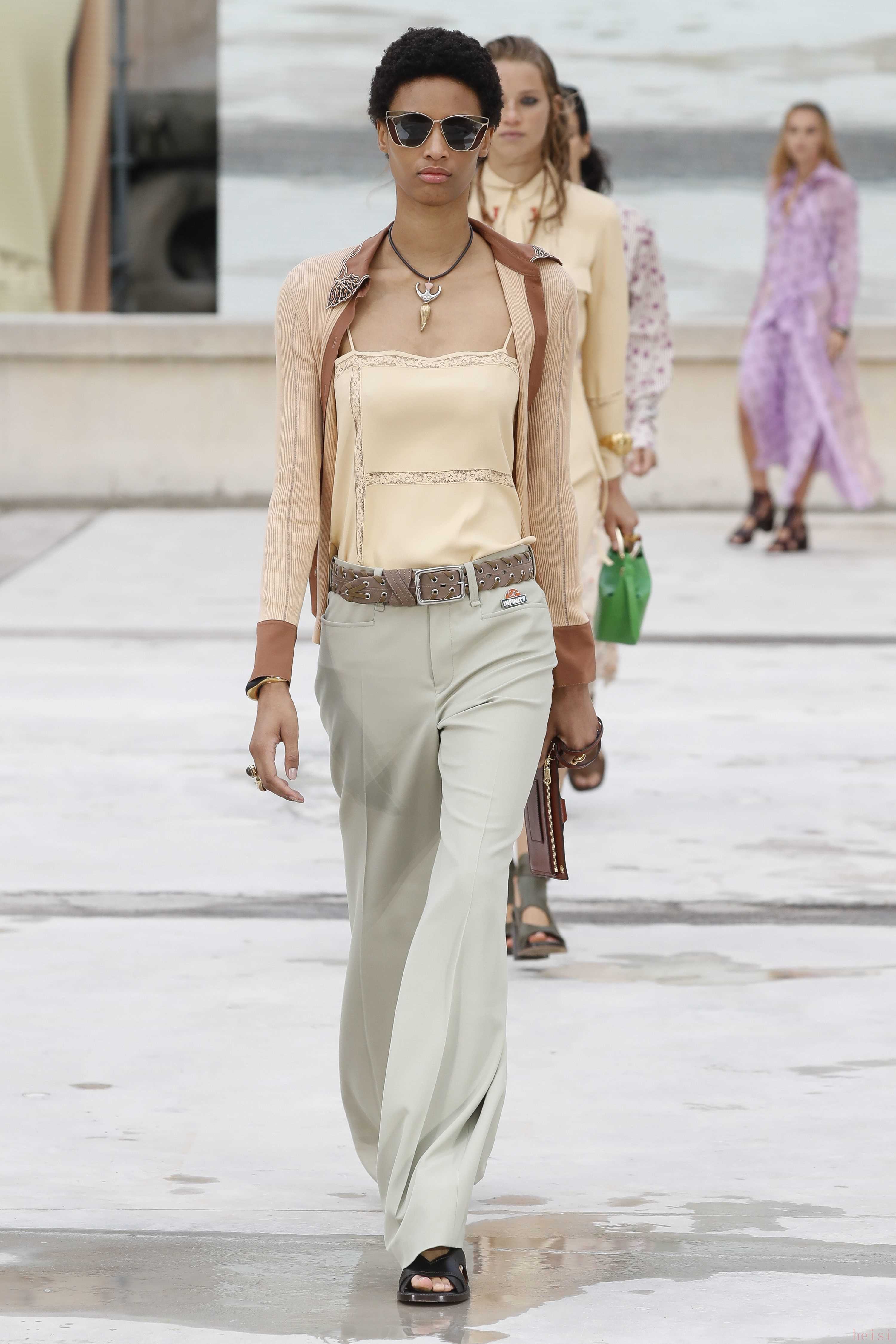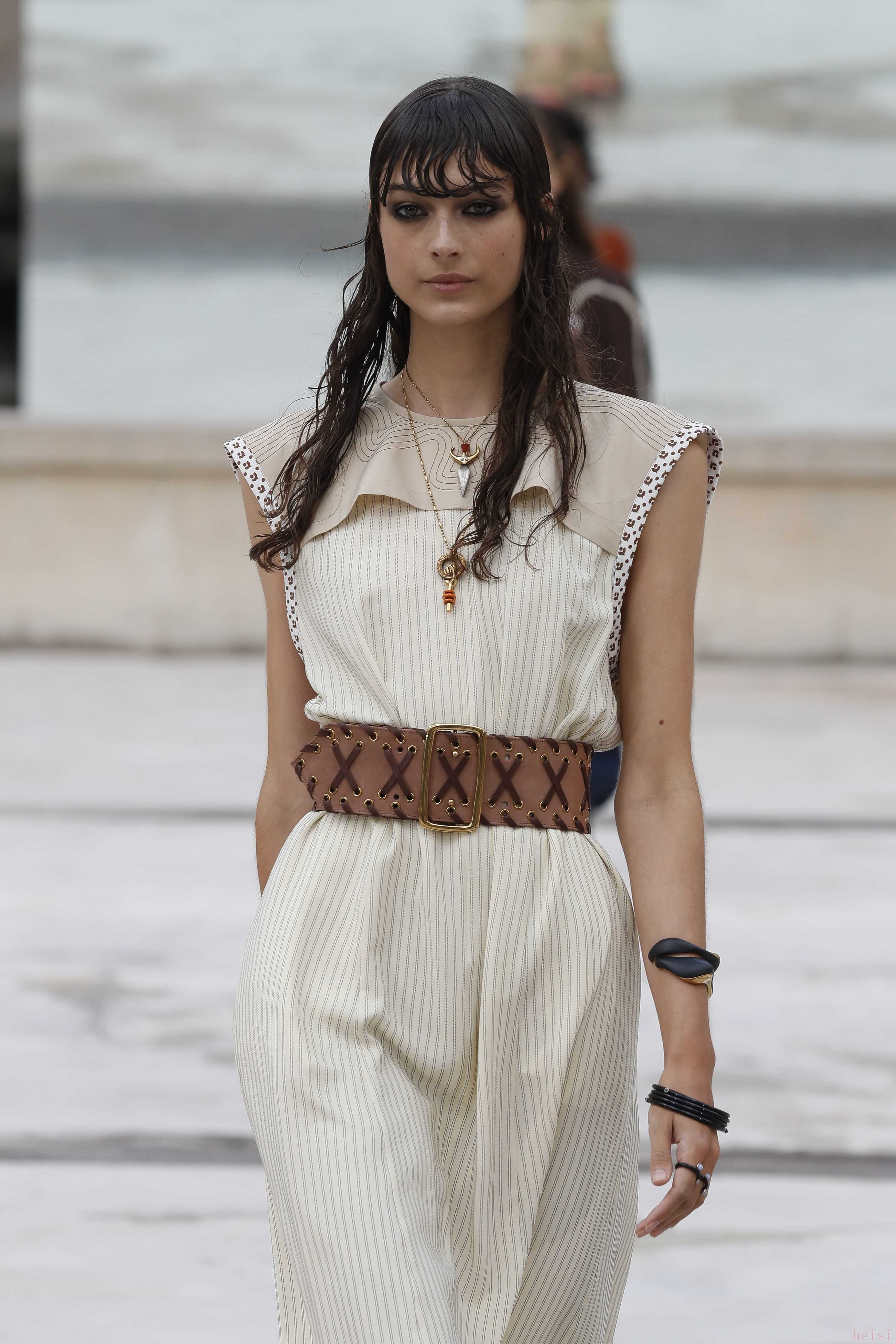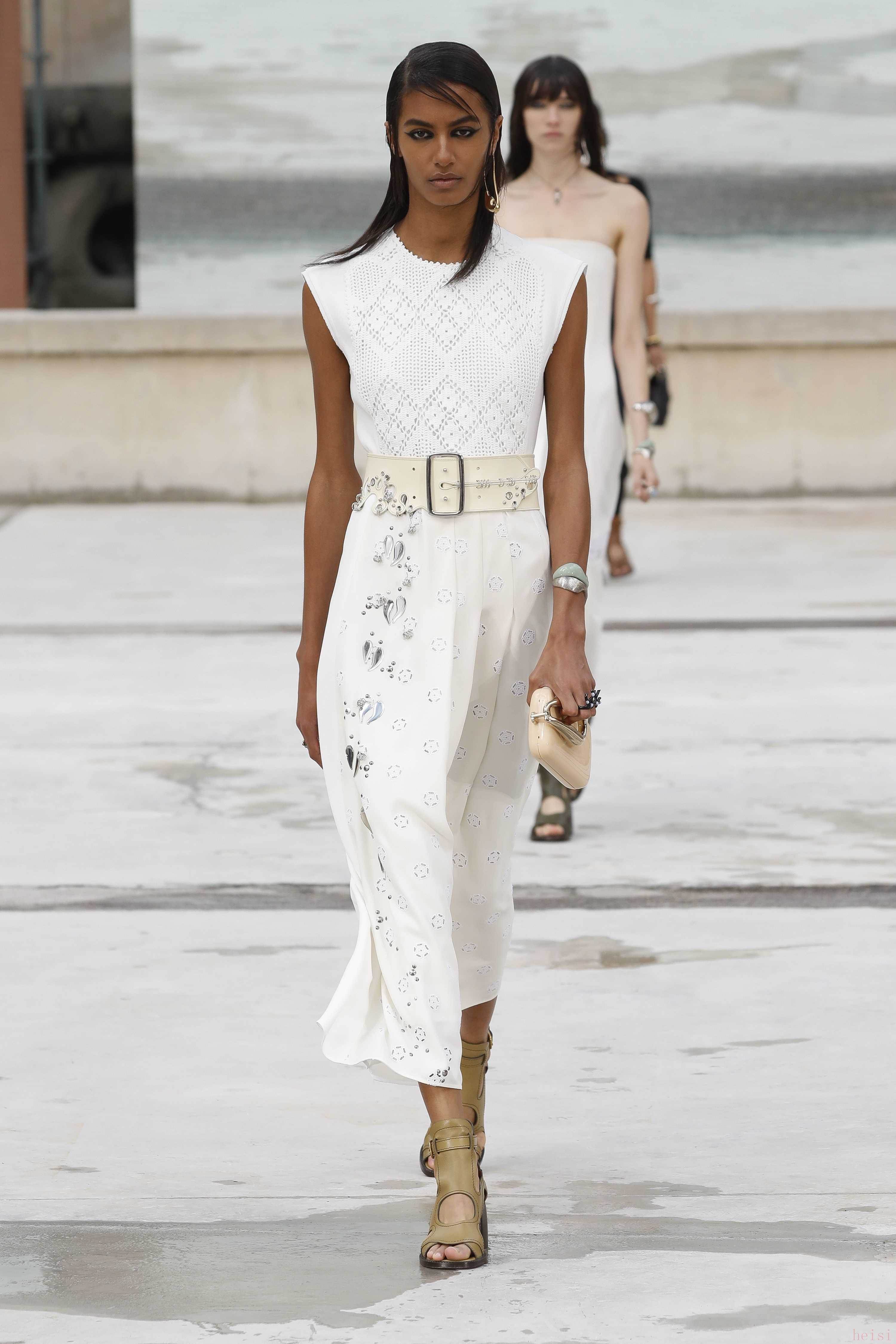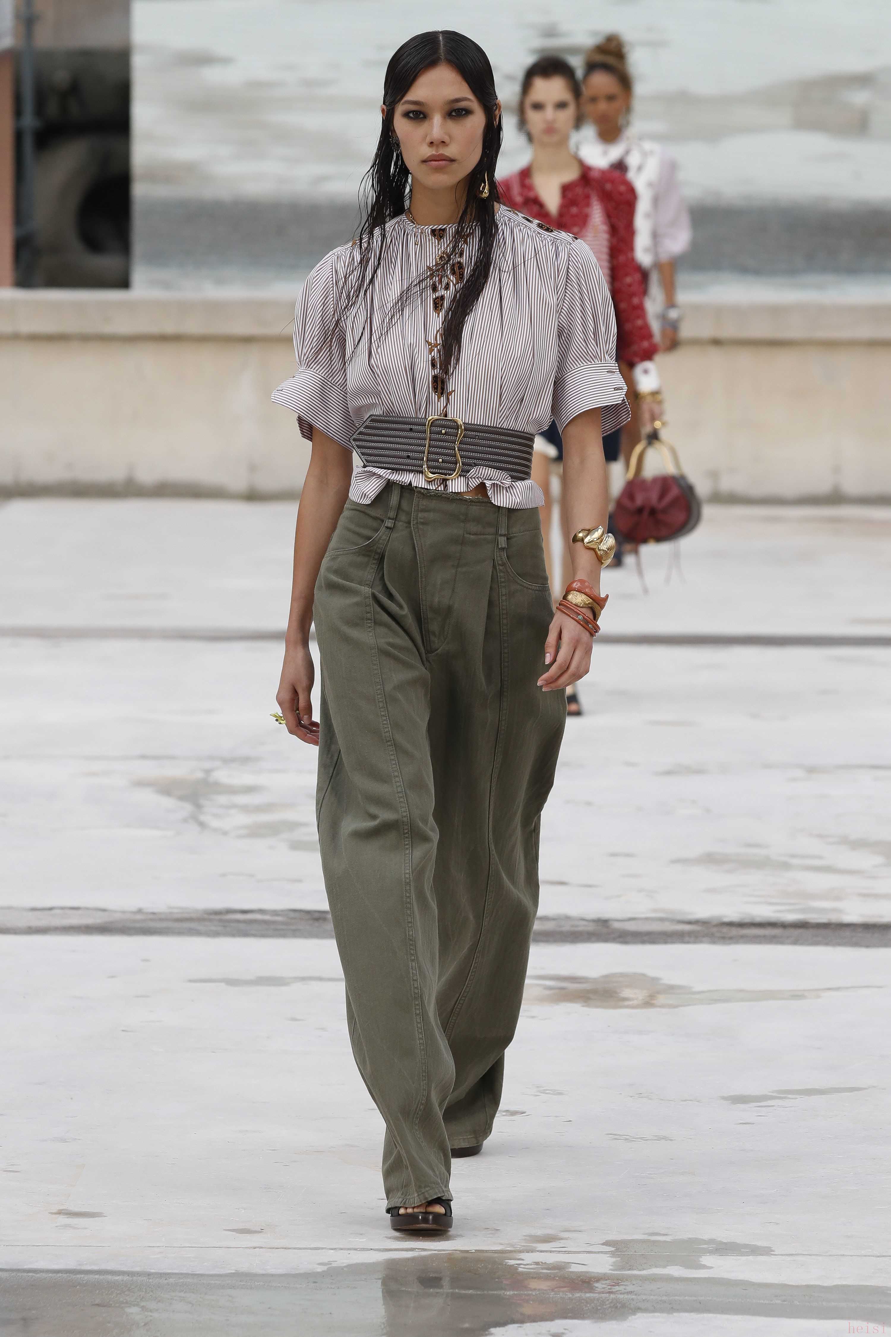 "配飾與鞋履:" 除了服裝,CHLOE的配飾(如包包、珠寶)和鞋履也是重要的組成部分,通常也會在時裝周上展示。