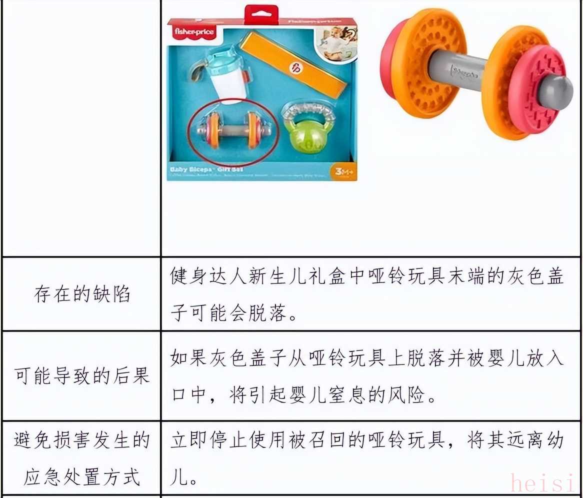 原因在于健身達(dá)人新生兒禮盒中啞鈴?fù)婢吣┒说幕疑w子可能會脫落。如果灰色蓋子從啞鈴?fù)婢呱厦撀洳⒈粙雰悍湃肟谥校瑢⒁饗雰褐舷⒌娘L(fēng)險。