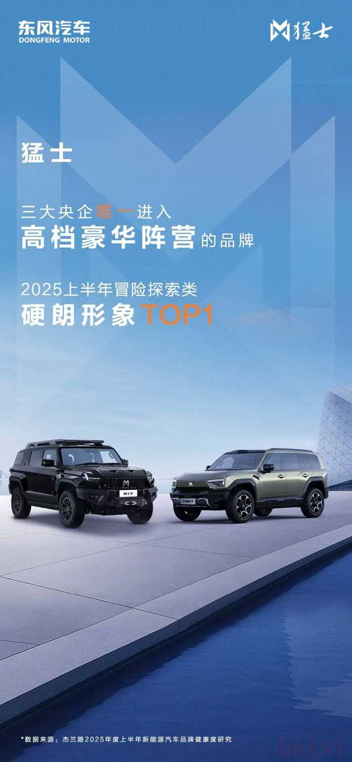 近日,杰蘭路重磅發(fā)布《2025年度上半年新能源汽車品牌健康度研究》報(bào)告,基于8200多名新能源用戶的真實(shí)反饋,在65個(gè)主流新能源汽車品牌的激烈競(jìng)爭(zhēng)中,猛士憑借鮮明的品牌定位與硬核實(shí)力脫穎而出,不僅連續(xù)兩年穩(wěn)居高檔豪華陣營(yíng),成為三大央企中唯一與奔馳、寶馬、奧迪等傳統(tǒng)豪華品牌同處高檔豪華陣營(yíng)的品牌,更斬獲2025上半年冒險(xiǎn)探索類硬朗形象TOP 1,彰顯出獨(dú)特的品牌魅力與市場(chǎng)認(rèn)可度。