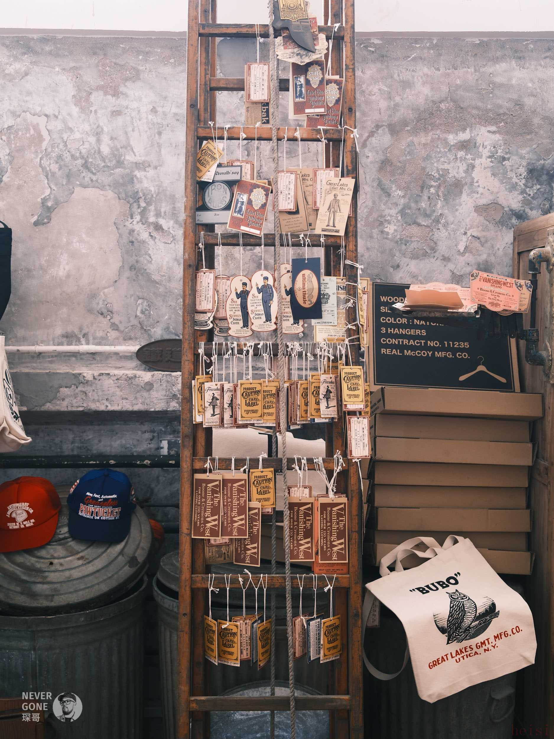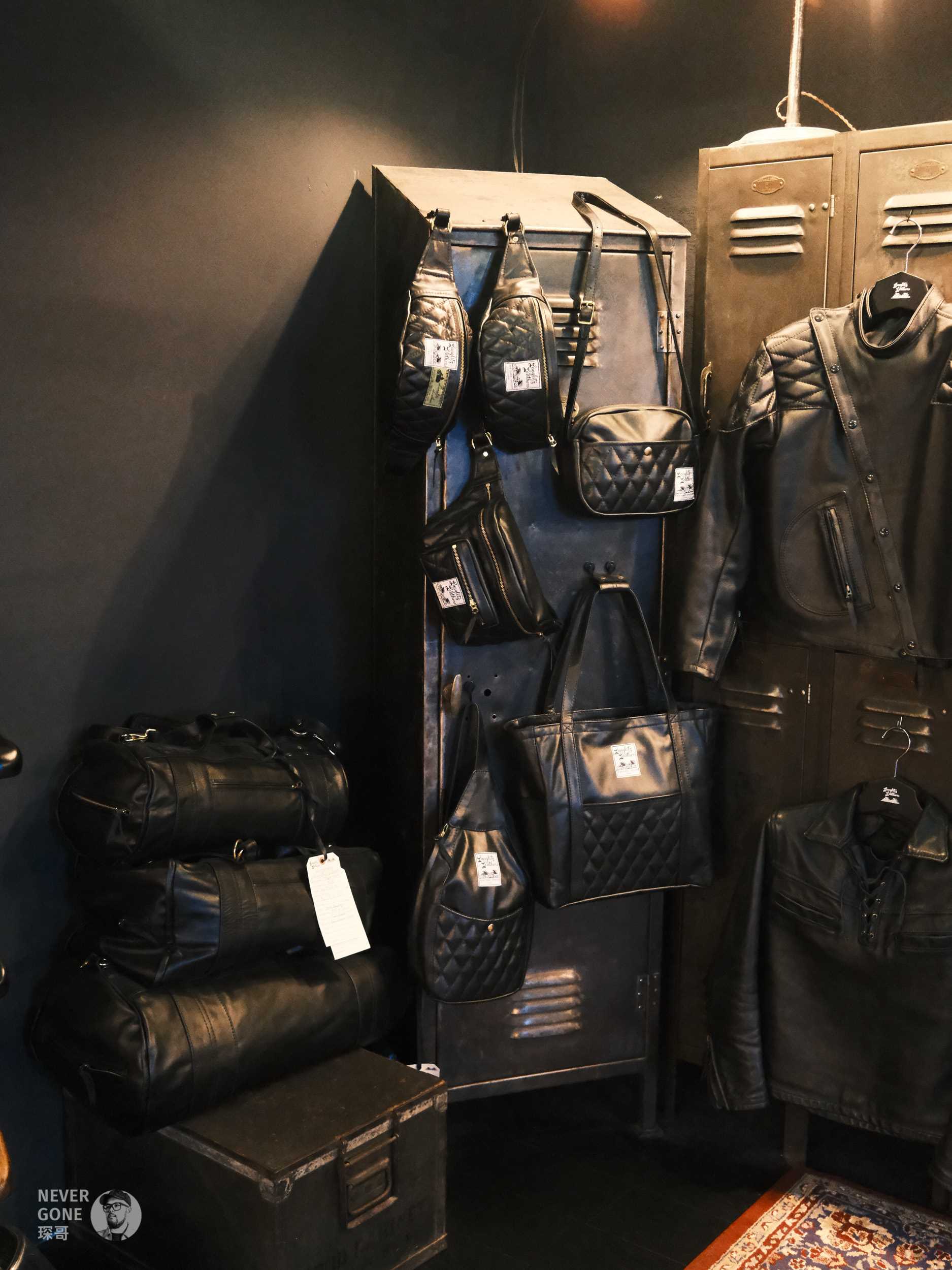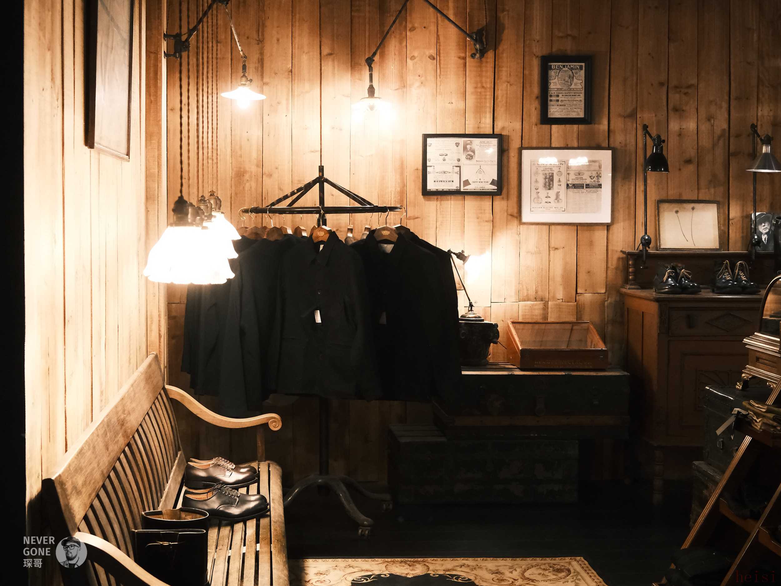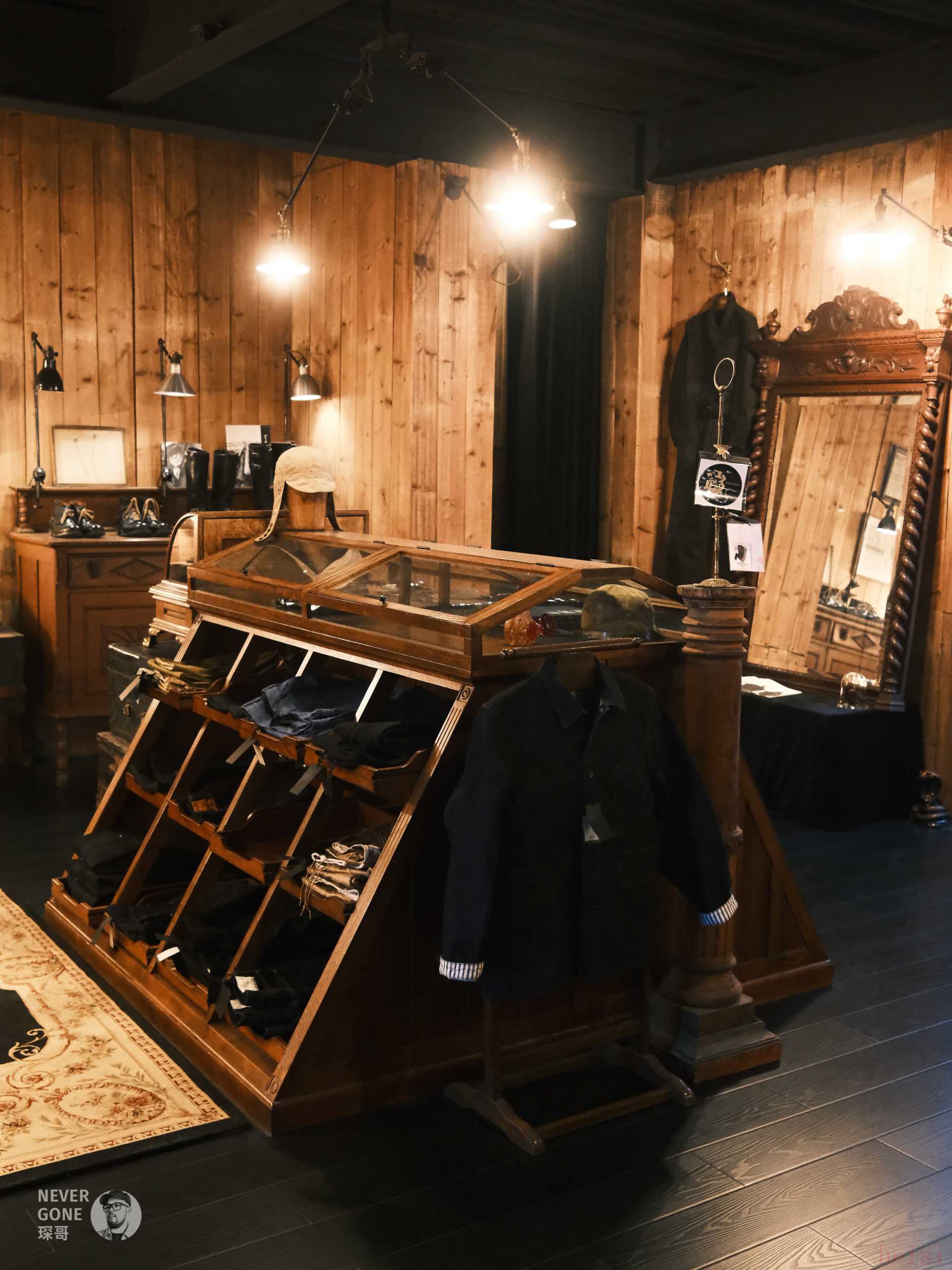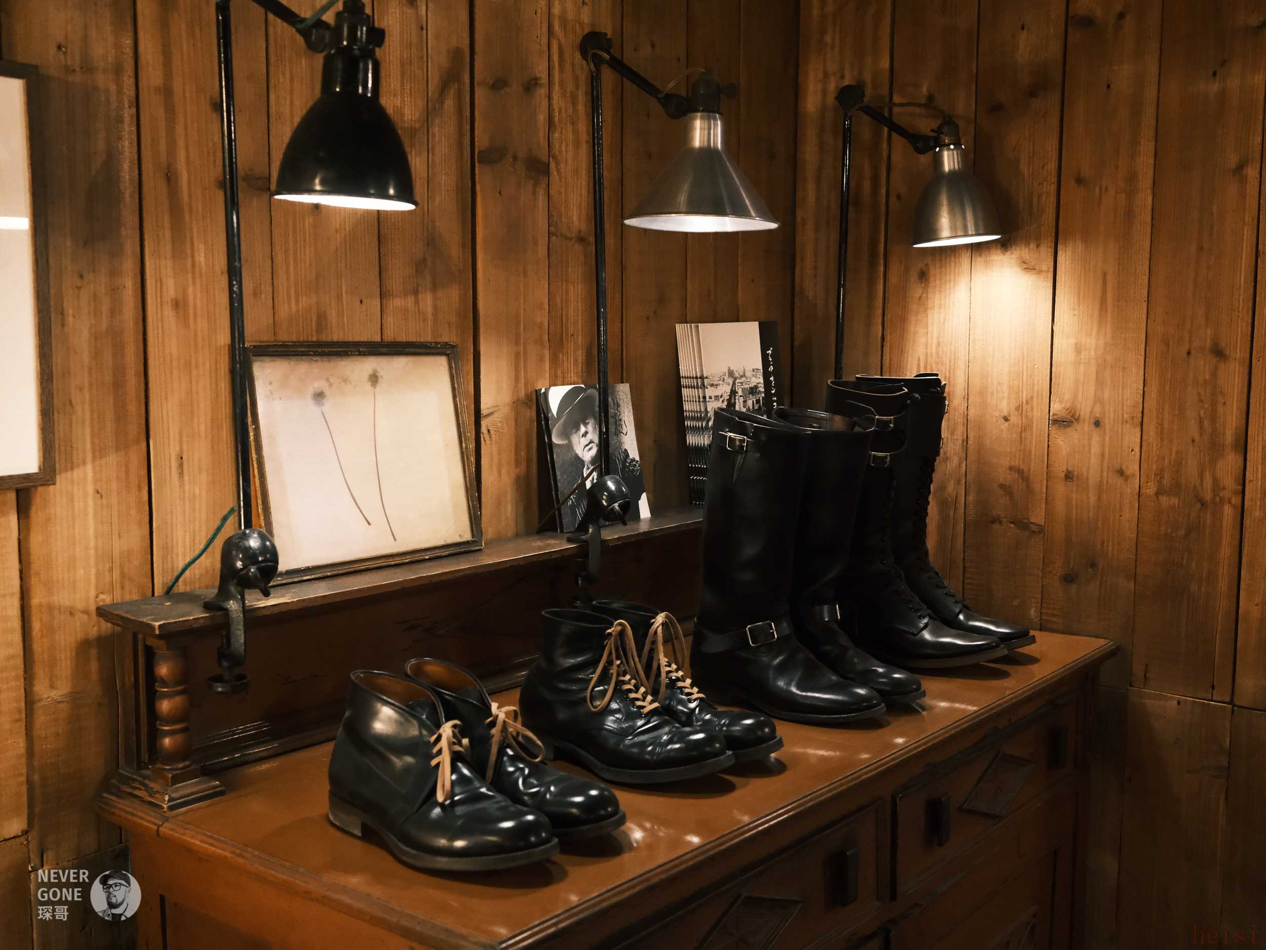 復(fù)古店在里頭,共有兩層樓。一樓非常的Black Code,跟名古屋Black Sign風(fēng)格貼近。因?yàn)榈曛骼诟缯f(shuō)Black Sign是他最?lèi)?ài)的品牌