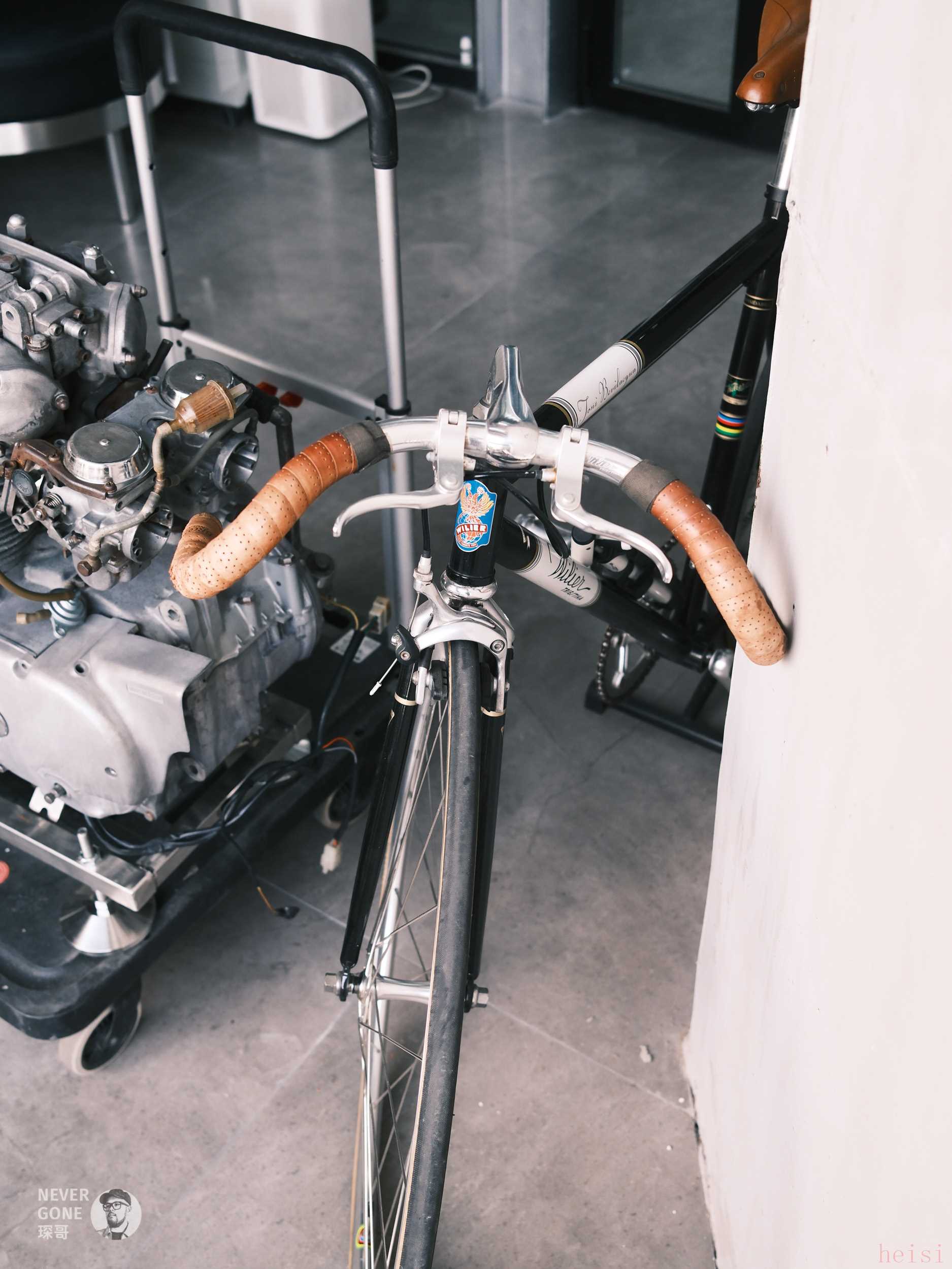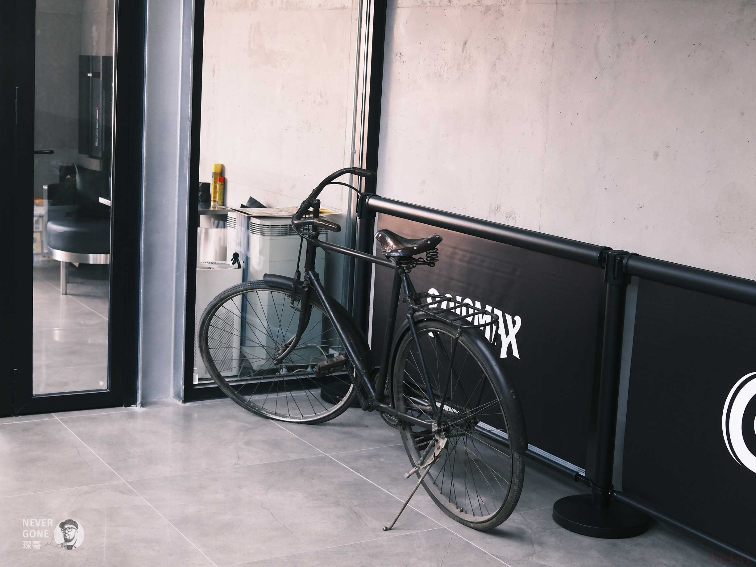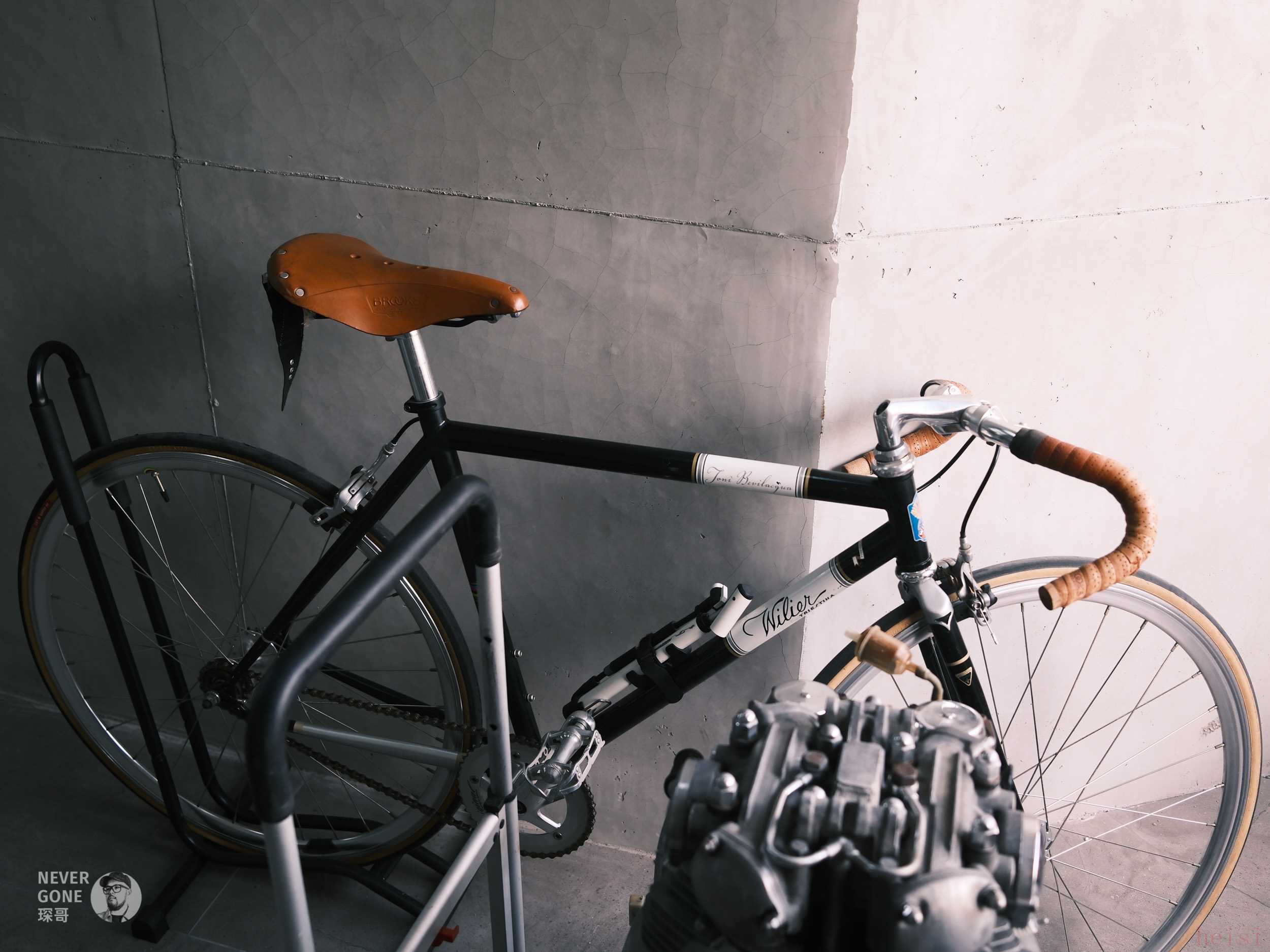 一進(jìn)門(mén)是他們的社交空間Coker,可以聊天飲咖,里面停著一輛28大杠