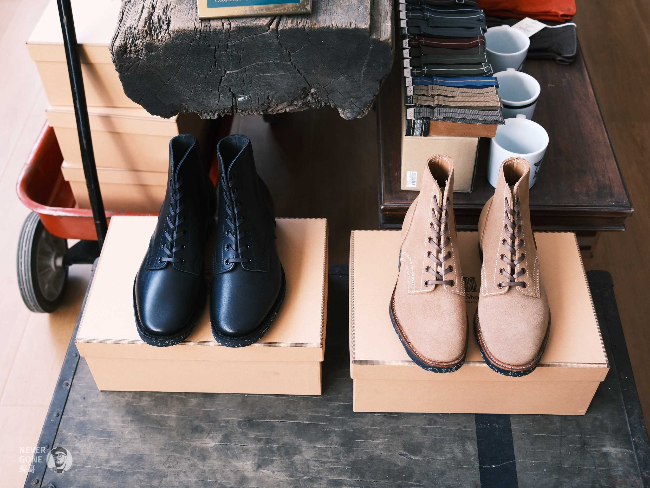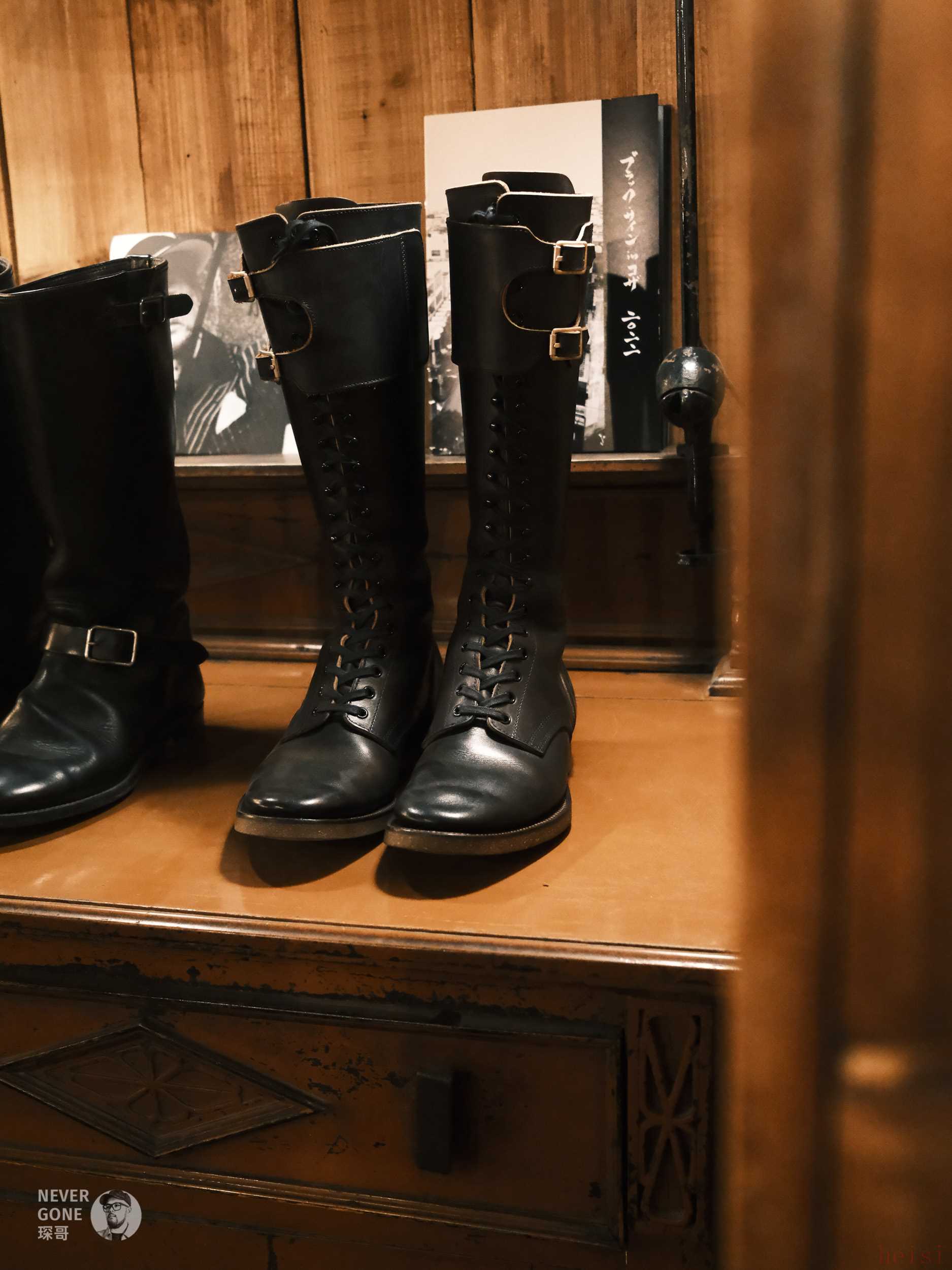 看到了非常熟悉的也是最高最顯眼的這雙Black Sign X Clinch 16寸Transcontinental ,第一批比我那雙皮革更厚實(shí)一點(diǎn)點(diǎn),之前發(fā)的開(kāi)箱詳見(jiàn):10000塊買(mǎi)了雙要穿10分鐘的靴子…開(kāi)箱Clinch X Black Sign 16寸復(fù)古長(zhǎng)靴