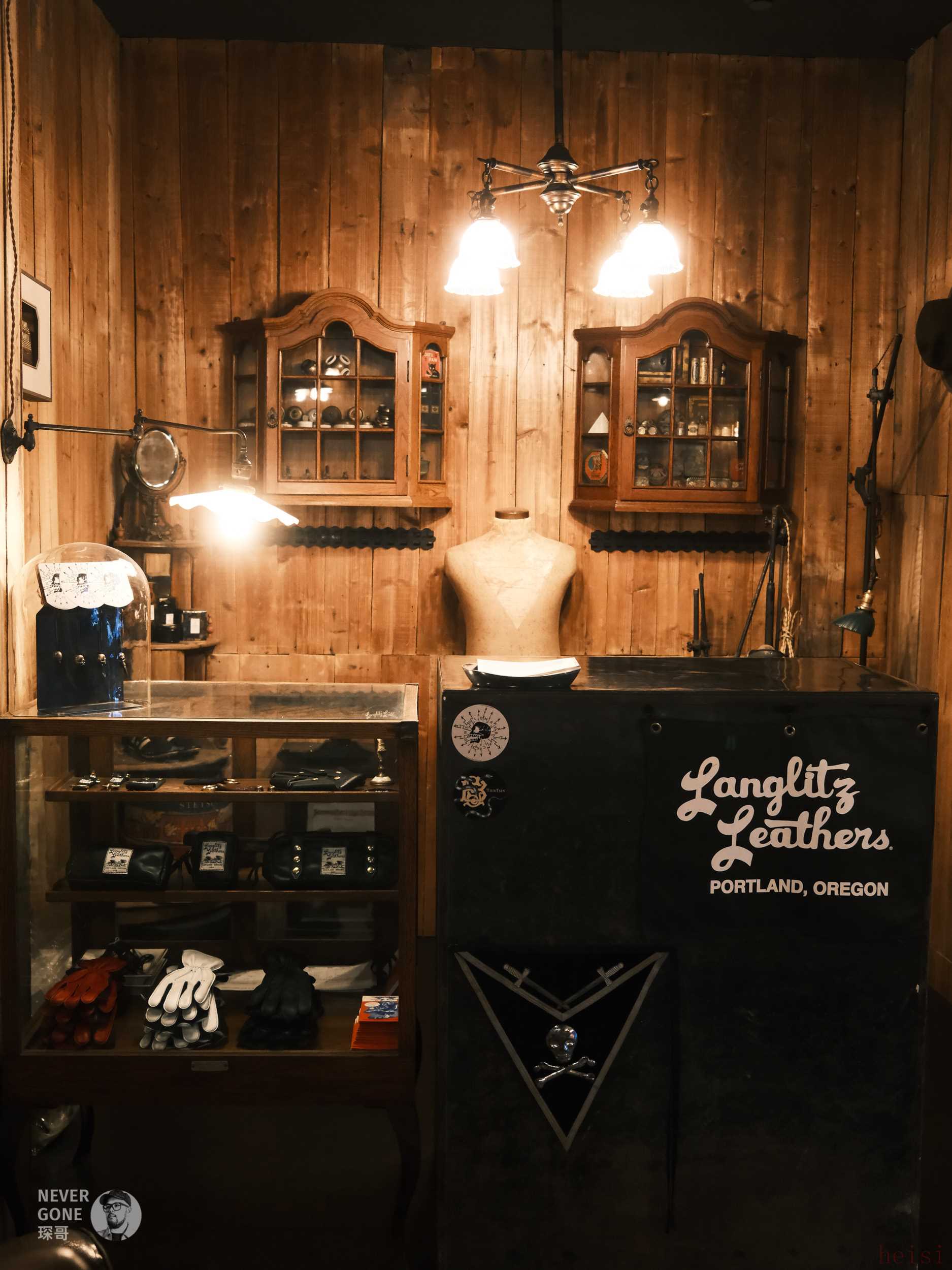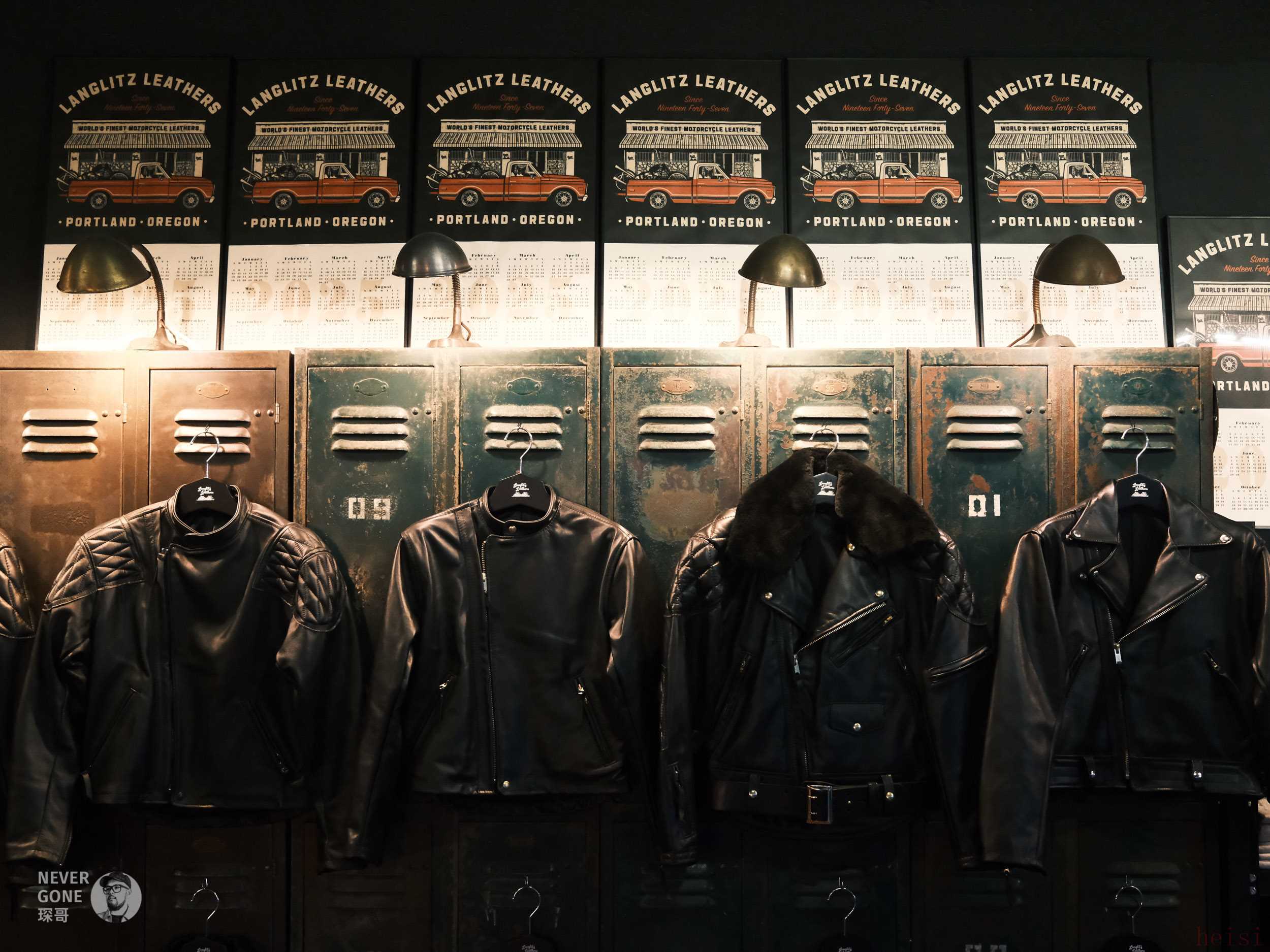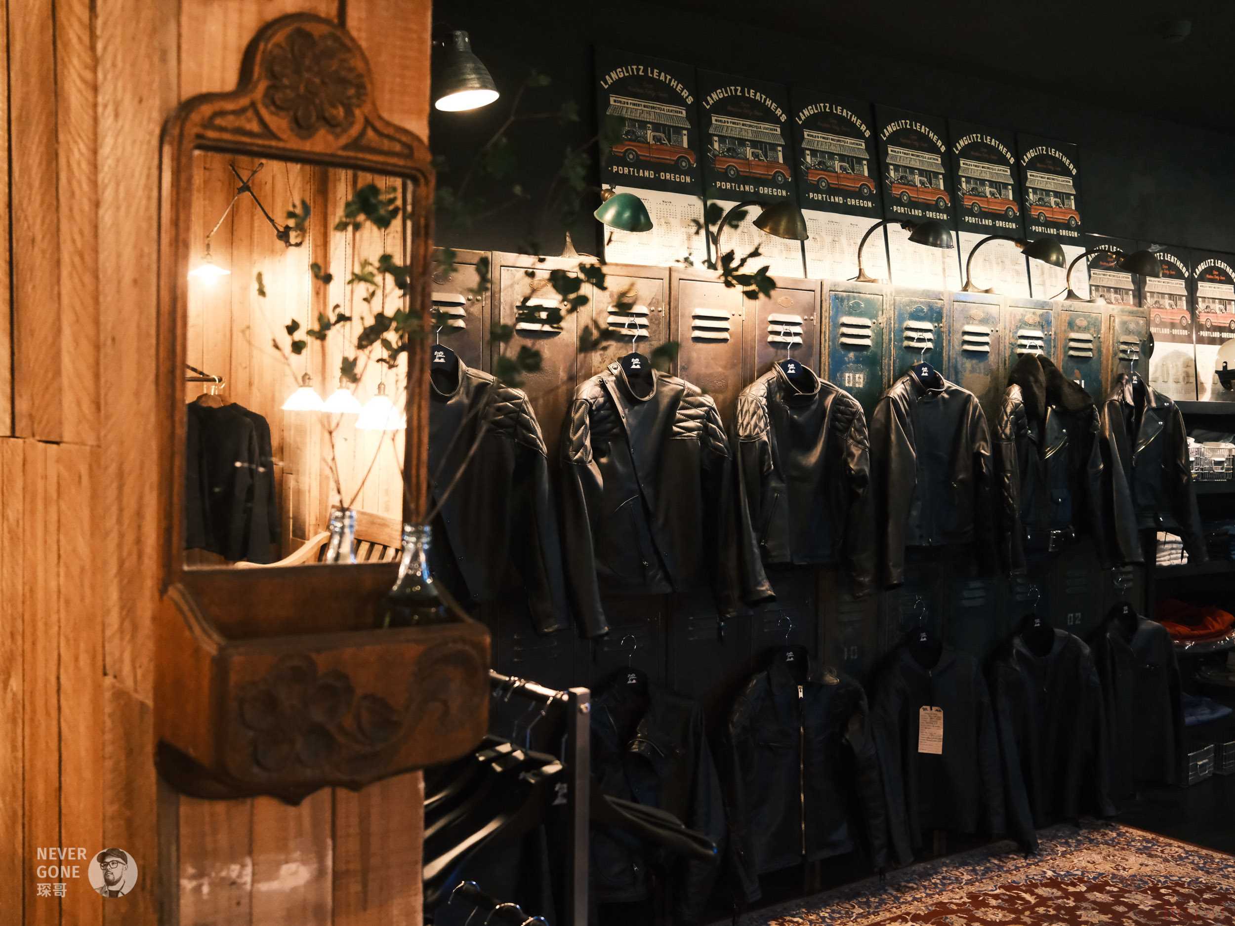 作為美國(guó)知名皮衣品牌Langlitz的代理,一樓有大面積展示Langlitz