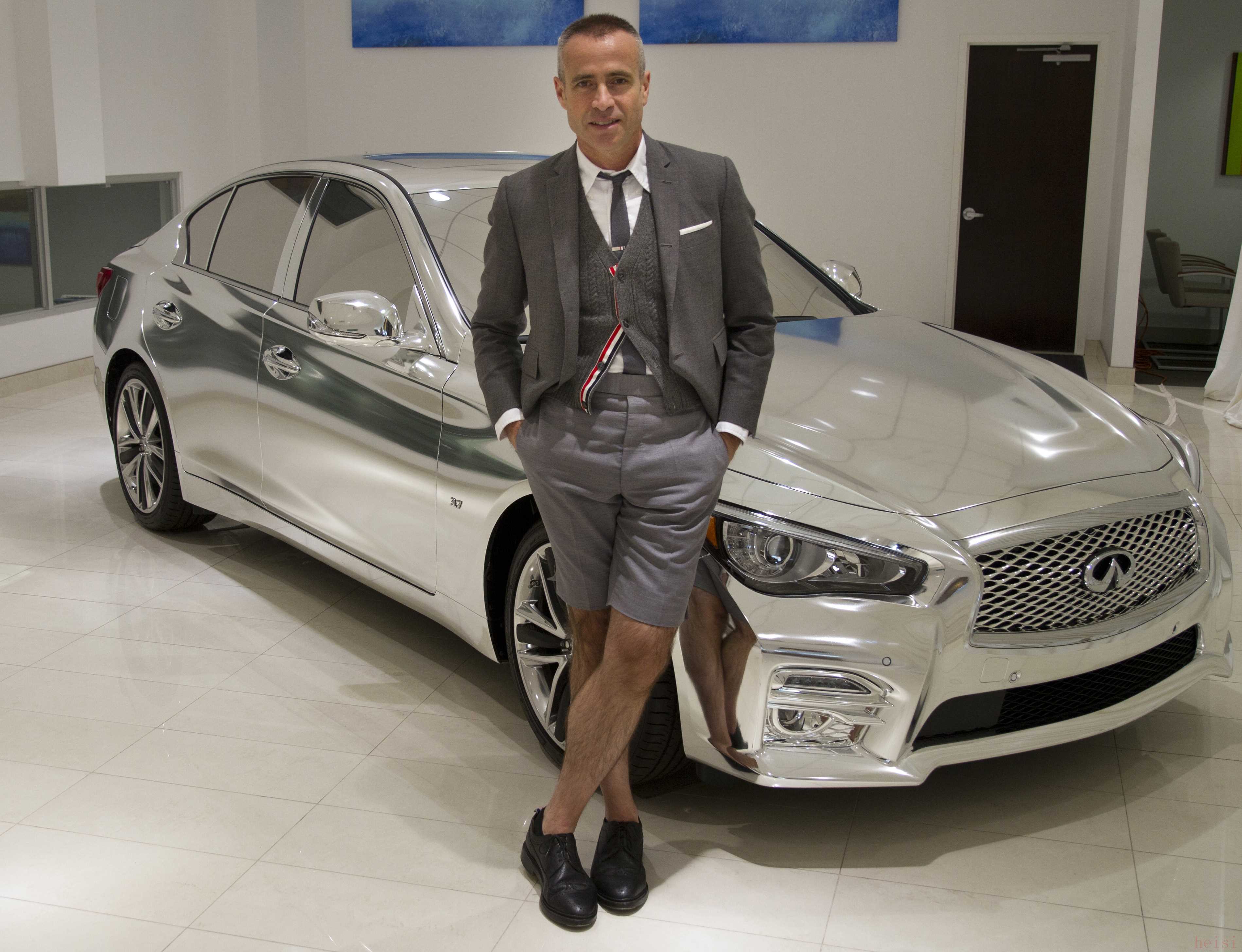 2013年,英菲尼迪與閃購網(wǎng)站GILT合作,男裝品牌設(shè)計(jì)師Thom Browne為英菲尼迪設(shè)計(jì)一款限量版Q50轎車。據(jù)當(dāng)時美國英菲尼迪市場總監(jiān)基思?圣克萊爾(Keith St.Clair)表示:“除了出于安全考慮不能在儀表盤上鑲嵌鉆石以外,Thom Browne幾乎擁有完全的自主設(shè)計(jì)權(quán)?!?/p>