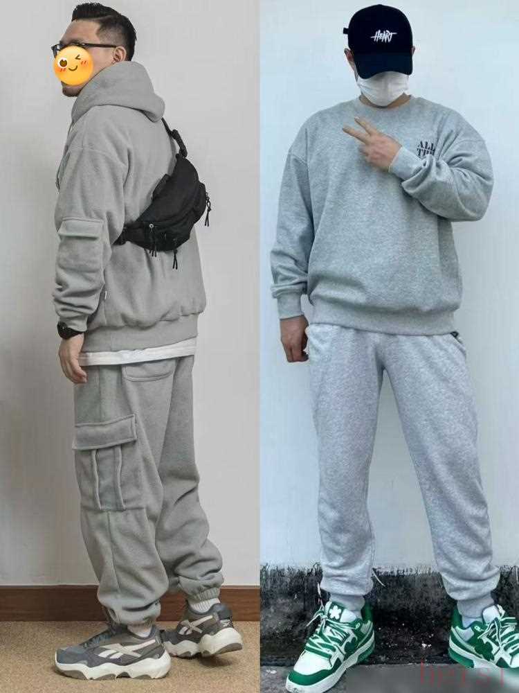 對比下來才發(fā)現(xiàn),運(yùn)動褲的關(guān)鍵是版型:要選修身但不勒肉的,面料要透氣速干,顏色選淺灰、卡其這種低飽和度的,比深色調(diào)更顯干凈。如果像我叔那樣穿過于寬松的,反而會把身材缺點(diǎn)放大,顯得沒精神。
