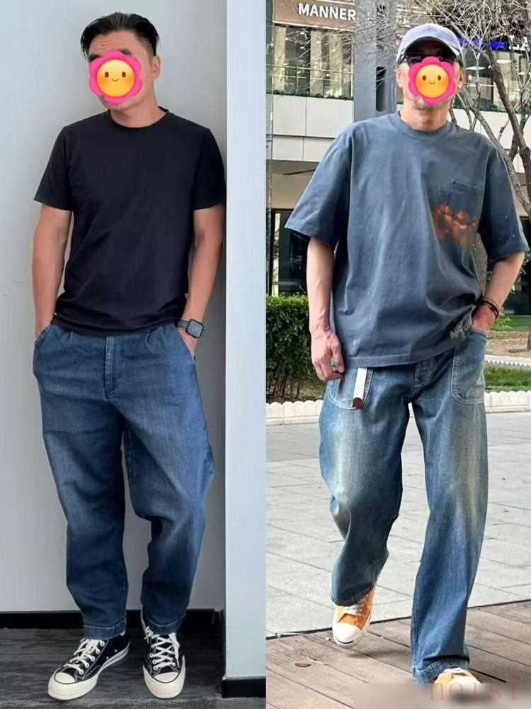 我叔的衣柜里全是那種薄得透光的T恤,穿幾次就變形,領(lǐng)口松得像“抹布”。其實(shí)中年男穿T恤,要選重磅棉的(比如200克以上),面料厚實(shí)有質(zhì)感,不容易變形,領(lǐng)口也不會松垮。顏色選純色或極簡小圖案的,比如白色、淺灰、藏青,比大logo、破洞款更顯高級。