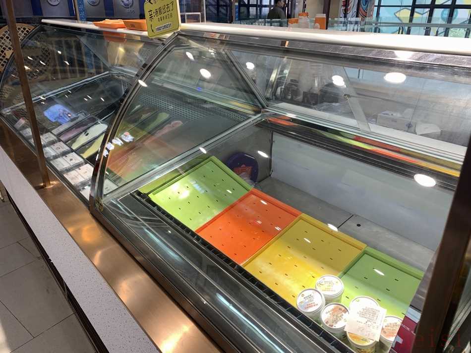 2020年11月1日,上海浦江鎮(zhèn)萬(wàn)達(dá)廣場(chǎng)的愛(ài)茜茜里門(mén)店,一個(gè)冰柜只剩下六個(gè)盒裝冰淇淋。 本文圖片 澎湃新聞?dòng)浾?朱奕奕