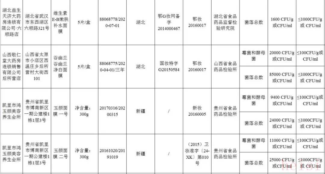 武漢潤禾生物醫(yī)藥有限公司生產(chǎn)的維生素E-B嫩膚補(bǔ)水面膜和谷幽蘭凈白面膜,