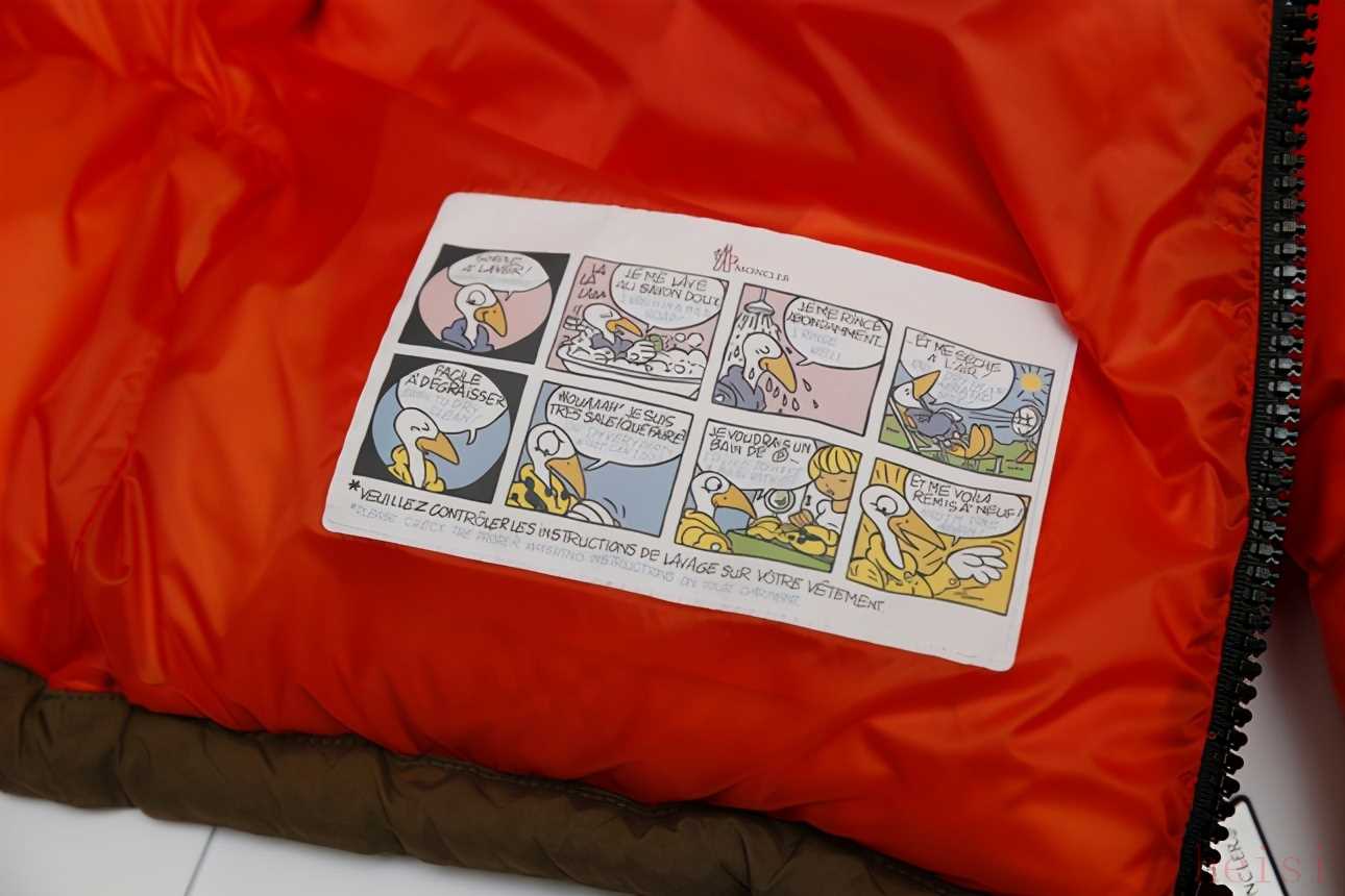 某些款式還會附上漫畫介紹的水洗標獨特配色材質與功能性有別于多數(shù)品牌習慣冬季推出較暗色系列的款式,Moncler(盟可睞)則是增加品牌多元性,推出多款獨特配色的羽絨服,舉凡紅色、橘色、綠色等亮色面料,讓冬季穿搭也能跳出黑、灰、白,增加時尚感。Moncler(盟可睞)也運用其他面料在羽絨服上,例如選用小羊皮與尼龍面料打造的騎士夾克,十足展現(xiàn)酷炫機車精神。當然,對戶外愛好者來說,Moncler(盟可睞)具備強大的功能性,不僅加強御寒功用,也加強運動與登山的安全性,在國外深受不少登山、滑雪迷的熱愛。