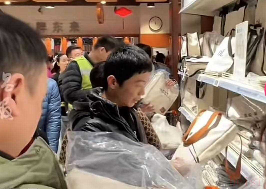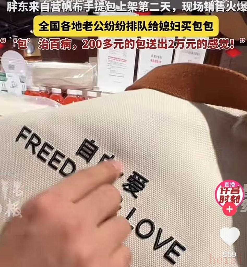 現(xiàn)場的視頻顯示,帆布袋銷售火爆,有網(wǎng)友直言“200多元的包送出了2萬元的感覺”。