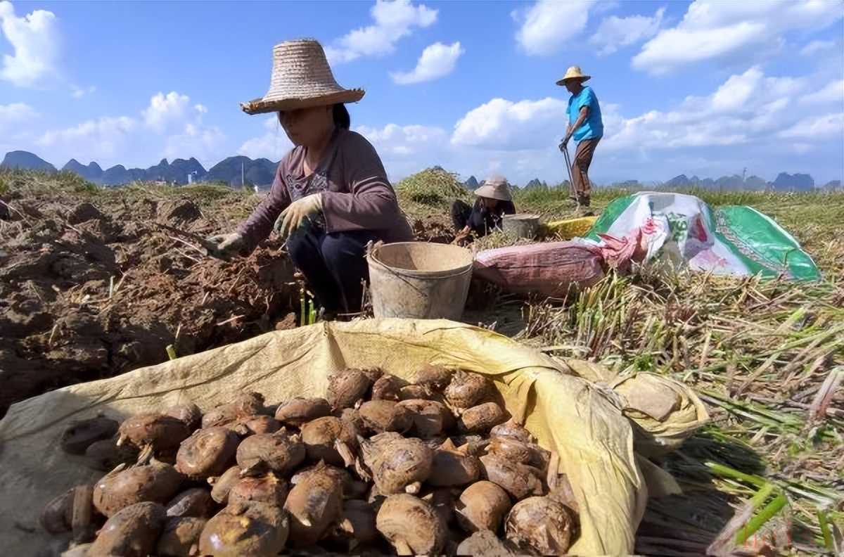賀州市平桂區(qū)鵝塘鎮(zhèn)丹村的村民在挖馬蹄 賀州日?qǐng)?bào)記者 楊峭峰 攝