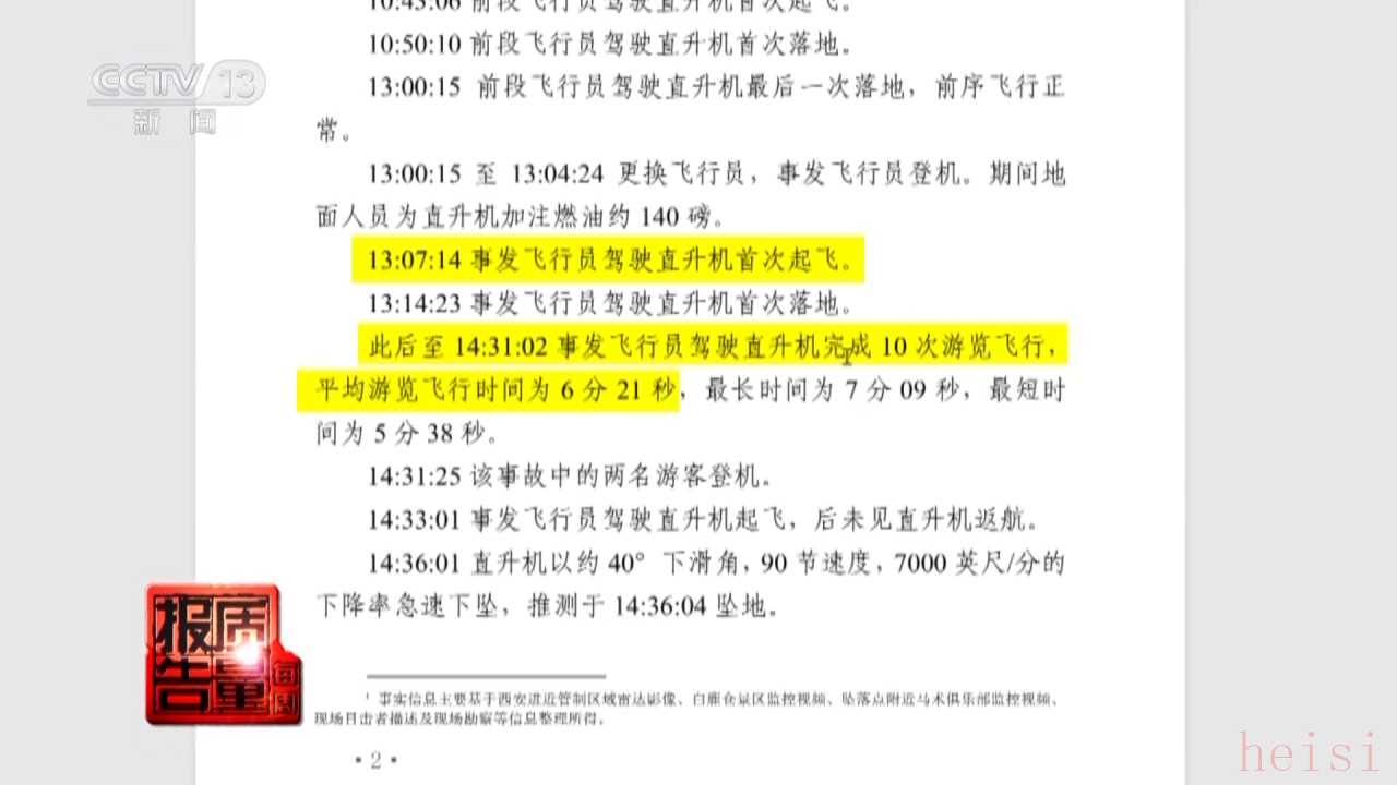 官方公布的調(diào)查報(bào)告顯示,該架直升機(jī)墜毀前不到一個(gè)半小時(shí)里完成了11次起降,每次平均游覽飛行時(shí)間為6分21秒。