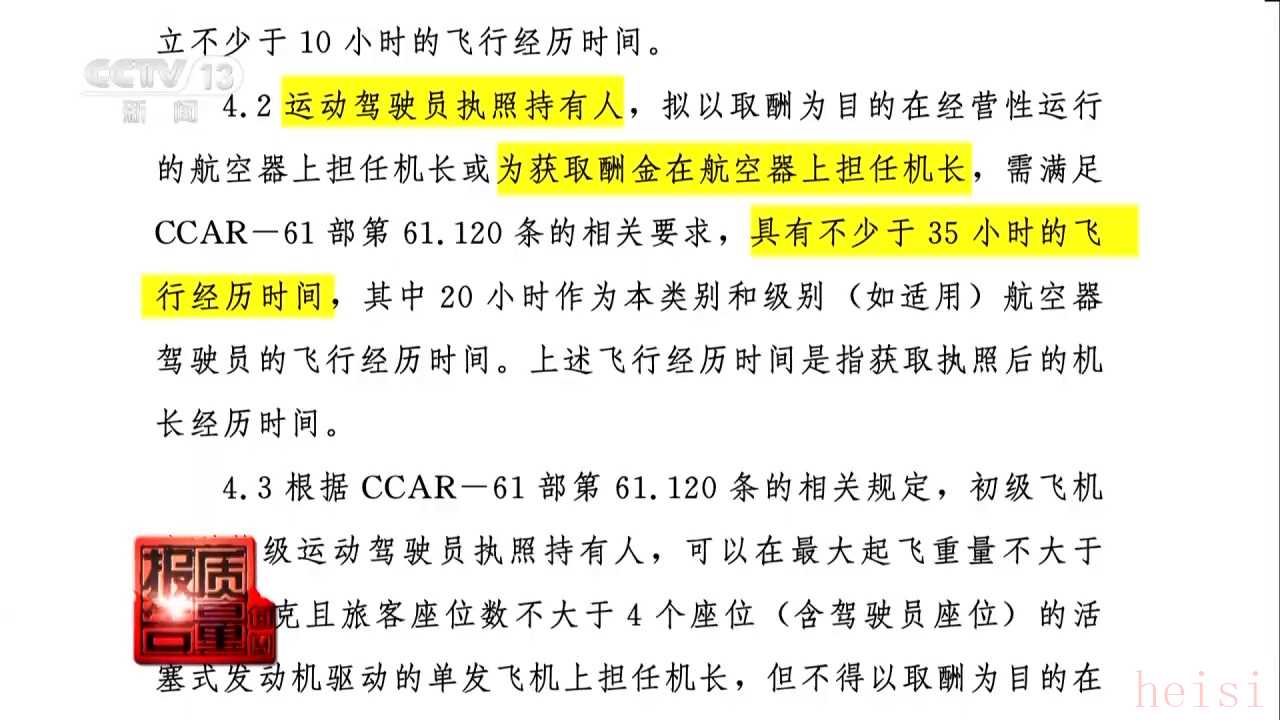 "每周質(zhì)量報(bào)告丨企業(yè)沒(méi)資質(zhì)卻敢開(kāi)飛機(jī)帶人上天 總臺(tái)記者起底“黑飛”亂象"