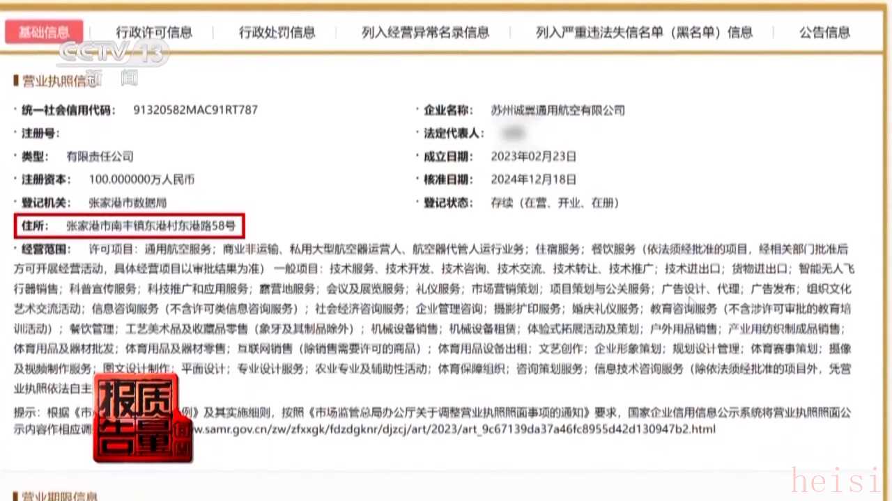 在野地里插了塊寫(xiě)著地址的牌子,辦公場(chǎng)所看不見(jiàn),維護(hù)設(shè)施也沒(méi)找到,蘇州誠(chéng)翼通用航空有限公司怎么就敢開(kāi)展空中游覽業(yè)務(wù)的呢?相關(guān)部門(mén)的調(diào)查是什么結(jié)論呢?繼續(xù)來(lái)看記者的調(diào)查。