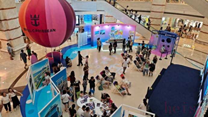 “去年,品牌首次在環(huán)球港舉辦郵輪節(jié)快閃活動(dòng),活動(dòng)期間吸引了近3萬(wàn)名現(xiàn)場(chǎng)觀眾,收到了許多預(yù)訂意向。今年游輪出游熱度高,我們?cè)诃h(huán)球港加大了推廣力度,品牌展示位置換到了環(huán)球港最具人氣的太陽(yáng)廳中庭,面積更大、活動(dòng)更多?!被始壹永毡扔屋喐呒?jí)產(chǎn)品市場(chǎng)經(jīng)理張森笑著說(shuō),皇家加勒比游輪與“環(huán)球港”商場(chǎng)名字可謂“般配”,環(huán)球港是游輪的“港灣”。