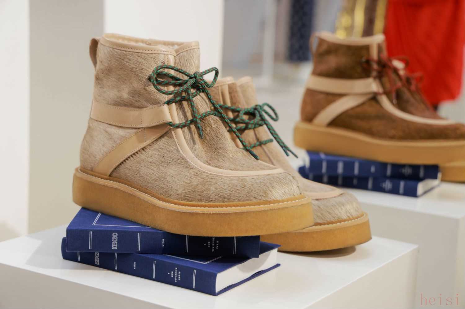 男女同款X Trainer運動鞋中底采用網(wǎng)狀材料,由皮革、麂皮和橡膠材質(zhì)制成。同時展出的還有由斑點馬毛皮打造的冬季踝靴的KENZO Yuki,以及全新配色KENZO PACE運動鞋。