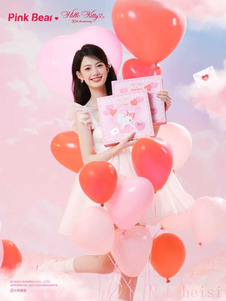 PinkBear X Hello Kitty 50周年紀(jì)念合作款禮盒采用淺粉色打底,結(jié)合愛心氣球圖案和Hello Kitty的經(jīng)典印花,營造甜美溫柔少女感。