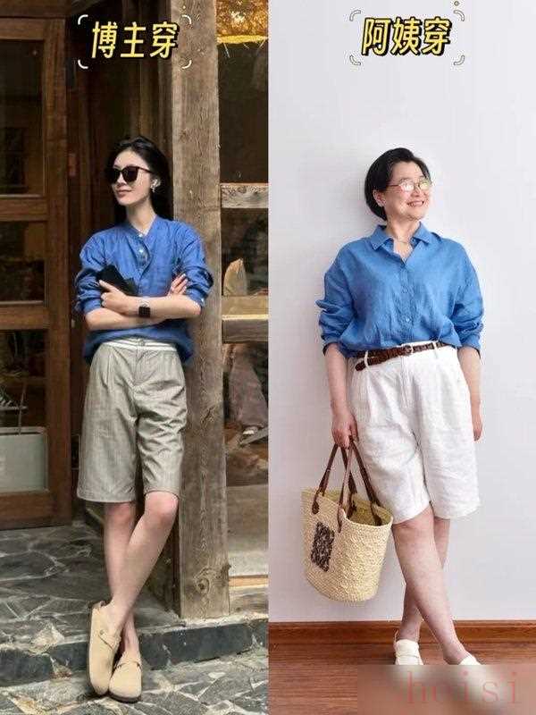 以前下樓買菜總看見鄰居阿姨裹著深灰或墨綠的“奶奶裝”,褲腳堆在腳腕上,整個人像裹了層舊棉被,看著就悶得慌?,F(xiàn)在不一樣啦,樓里張姨最近總穿藍(lán)襯衫配白短褲——天絲襯衫軟乎乎的,領(lǐng)口解開一顆扣,白短褲是高腰的,剛好露出腳踝,走起來帶點(diǎn)風(fēng),清爽得像剛從冰箱拿出來的冰荔枝,早上送孫子上學(xué),下午去超市買雞蛋,穿這個既舒服又好看,誰規(guī)定六十歲就得把自己裹成“移動墨水瓶”?
