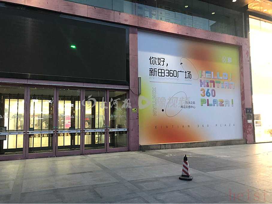 8月10日18:30,記者來到花園路新田360廣場,在原大商新瑪特鄭州國貿(mào)店正門口位置,看到工人正在張貼“你好,新田360廣場”大型噴繪畫面。