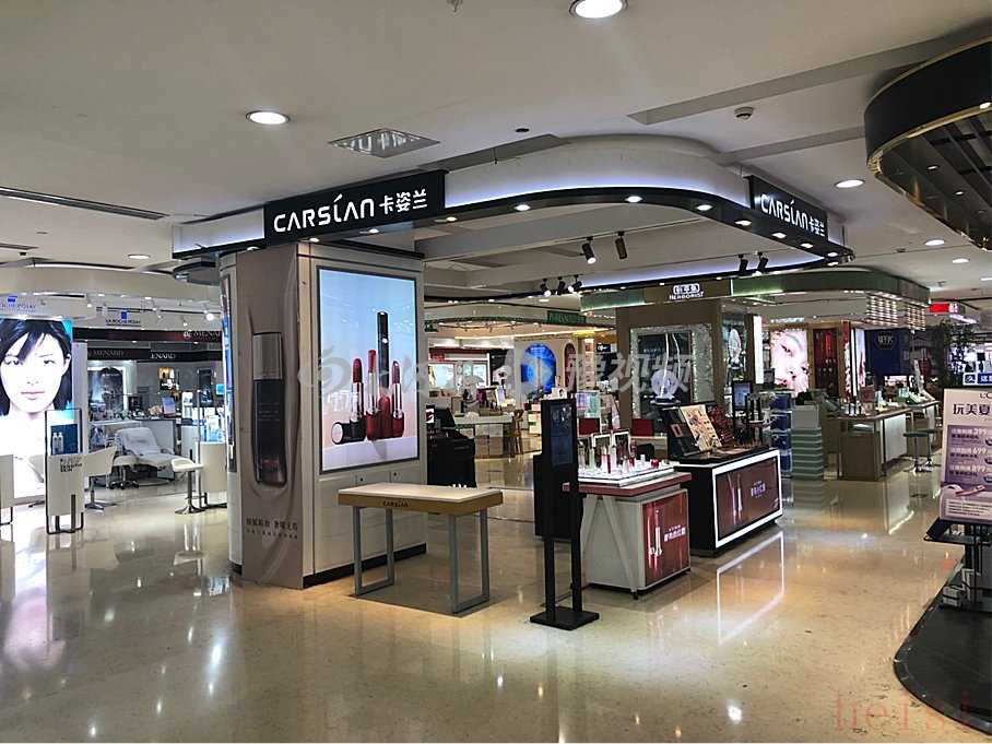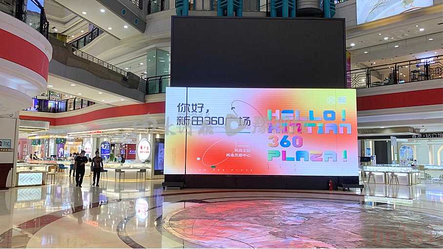 記者進(jìn)入商場,臨閉店時(shí)刻,仍有零散顧客進(jìn)出,各專柜人員或在整理貨物,或在接待顧客。一樓中廳的大屏顯示的畫面是“你好,360廣場”。