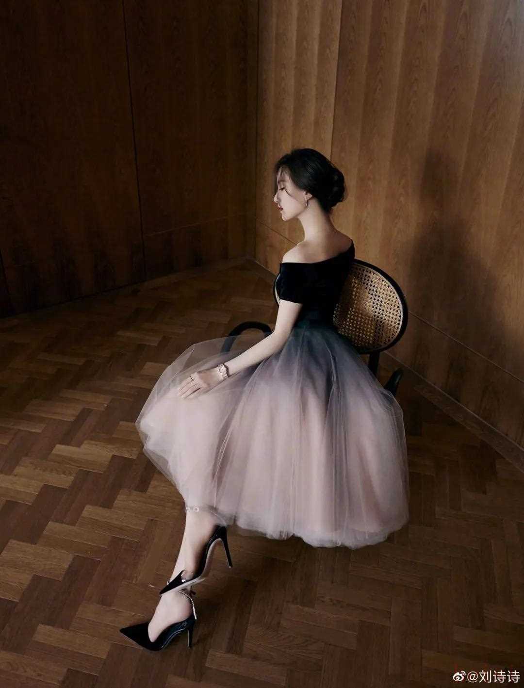 劉詩詩這條裙子算是輕盈優(yōu)雅的日常款,像是漂亮的芭蕾舞演員,踮起腳尖就就能旋轉。