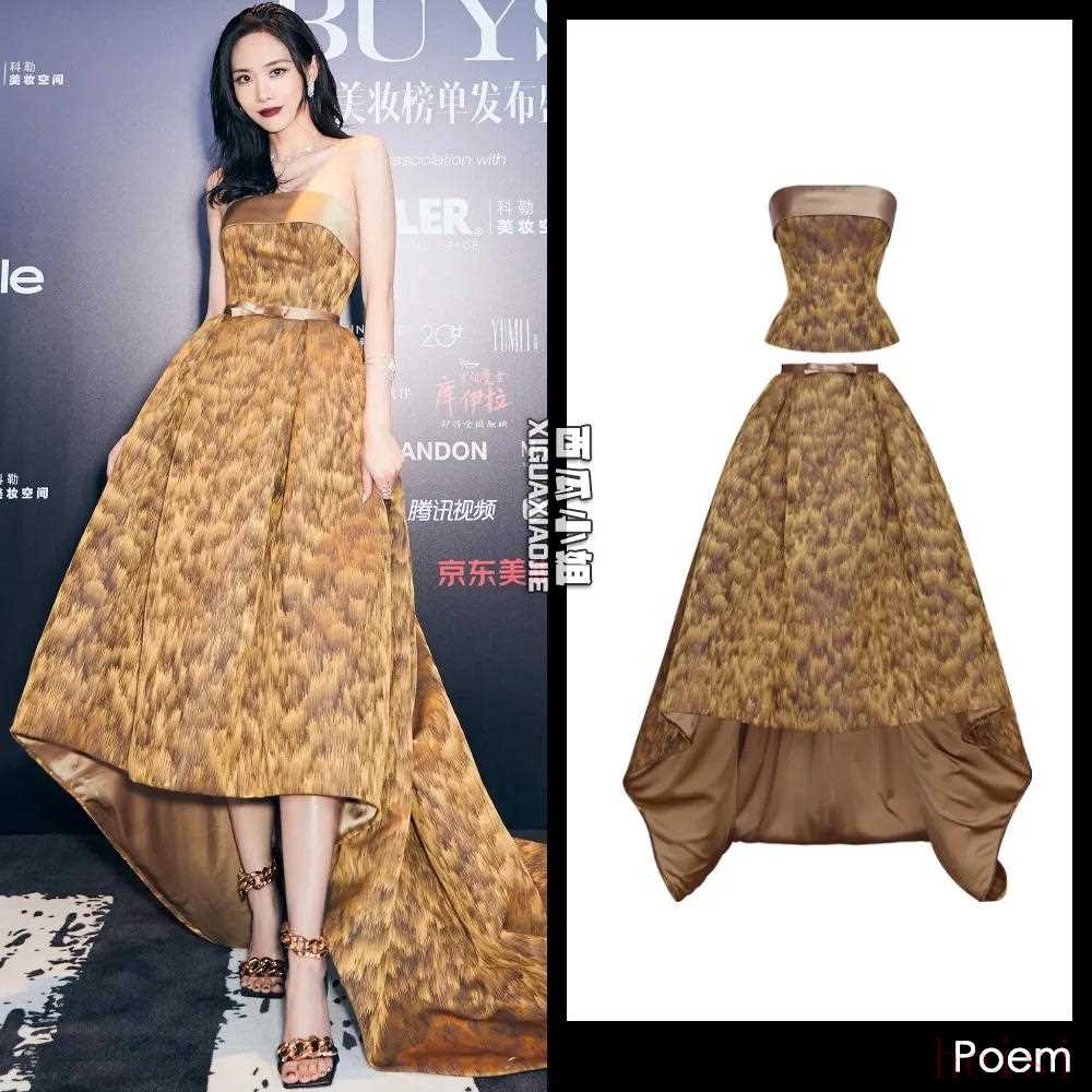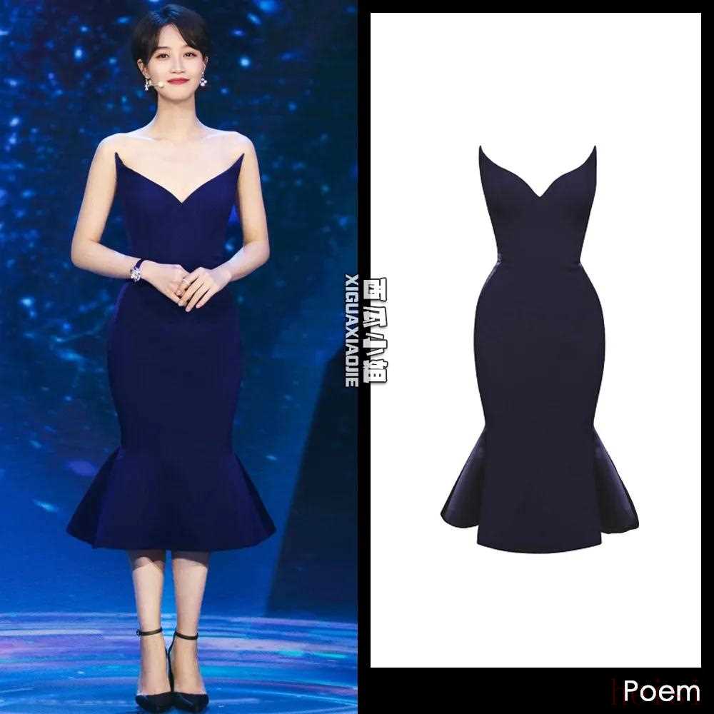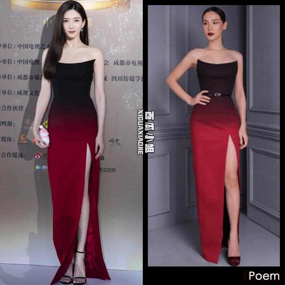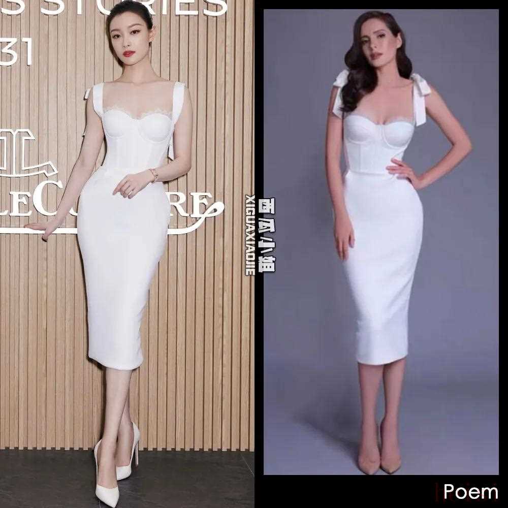 Poem這個牌子和前幾年流行的仙女裙不一樣,走的是勾勒身材的路線,簡單利落,線條硬朗,最大限度的凸顯出女明星的腰臀線條,有一種都市的成熟美艷。