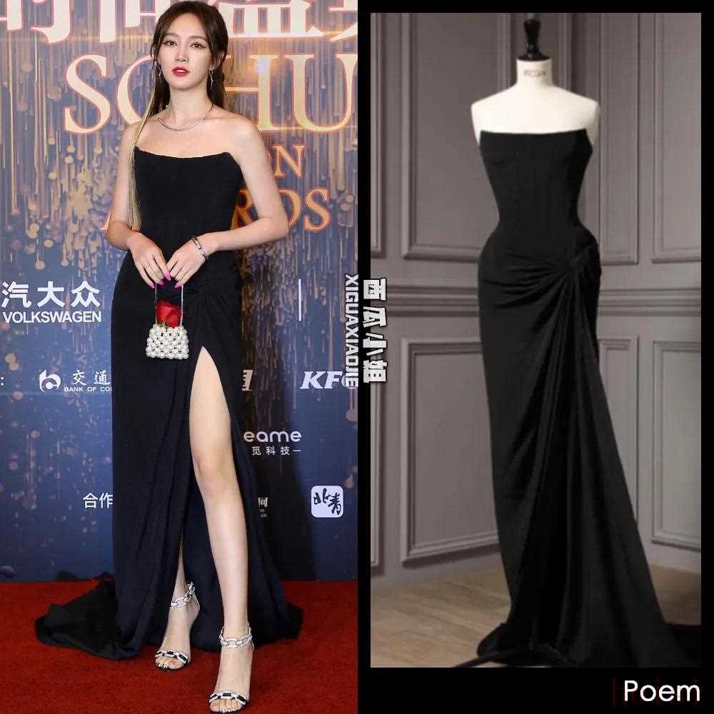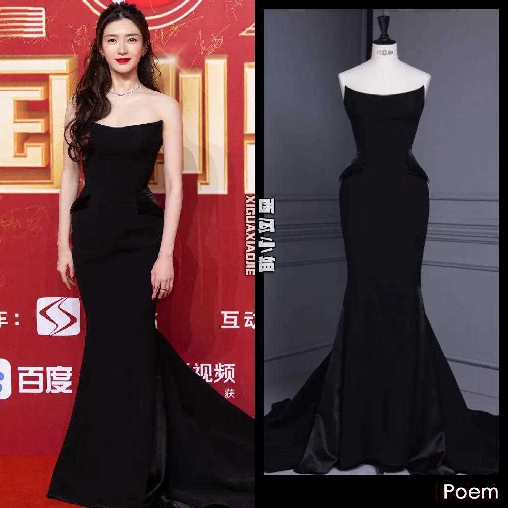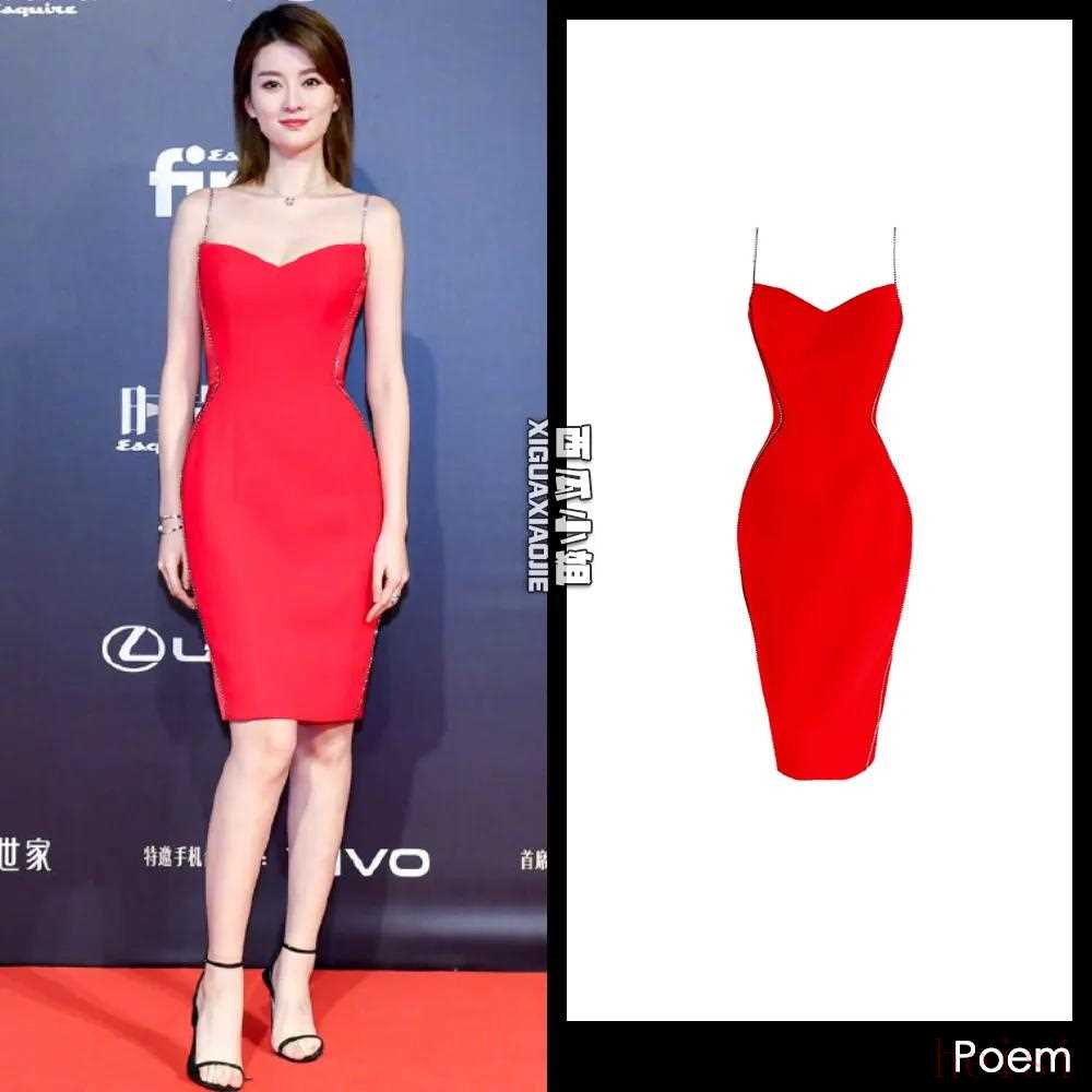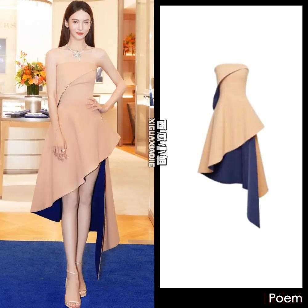 Poem這個牌子和前幾年流行的仙女裙不一樣,走的是勾勒身材的路線,簡單利落,線條硬朗,最大限度的凸顯出女明星的腰臀線條,有一種都市的成熟美艷。