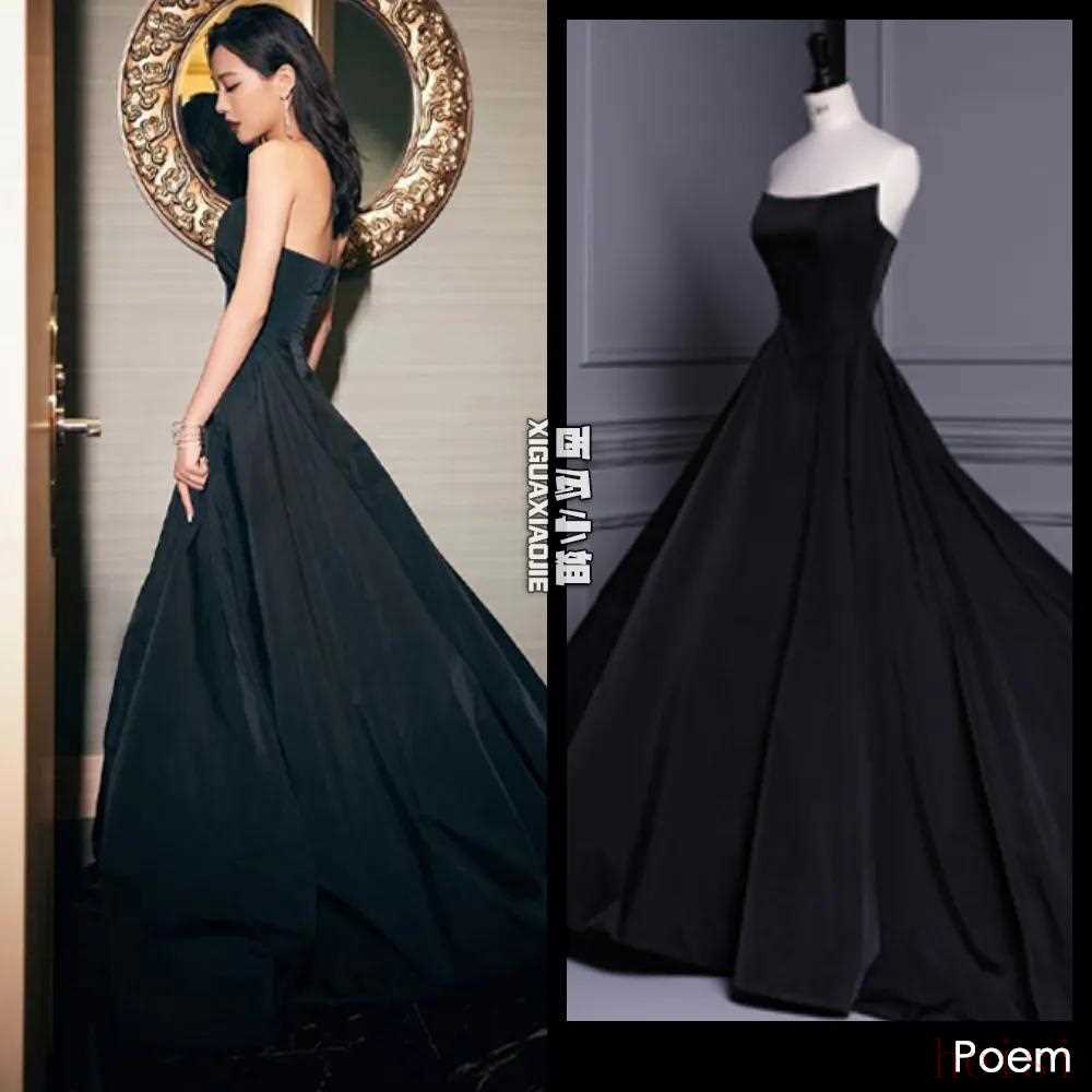 金晨也穿過幾次Poem的小禮服,不過她選的樣式和別人不一樣。因為她還是帶著一點甜美風格,所以太過凸顯身材的性感長禮服反而過于成熟,這樣恰到好處的裙子更適合她。