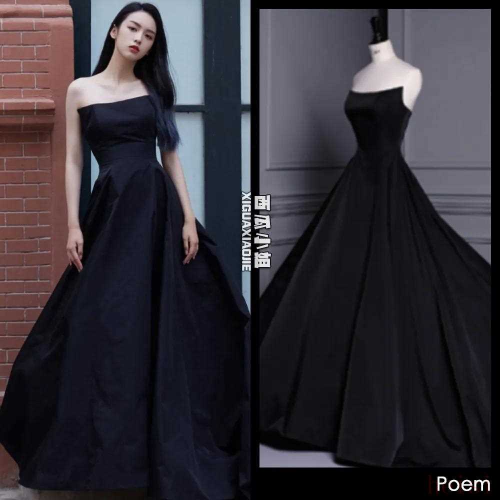 可是你不得不說,看起來平平無奇的裙子,穿在身上卻比那些繁瑣的設計更值得反復觀看,像月光下的黑玫瑰,清冷孤傲。