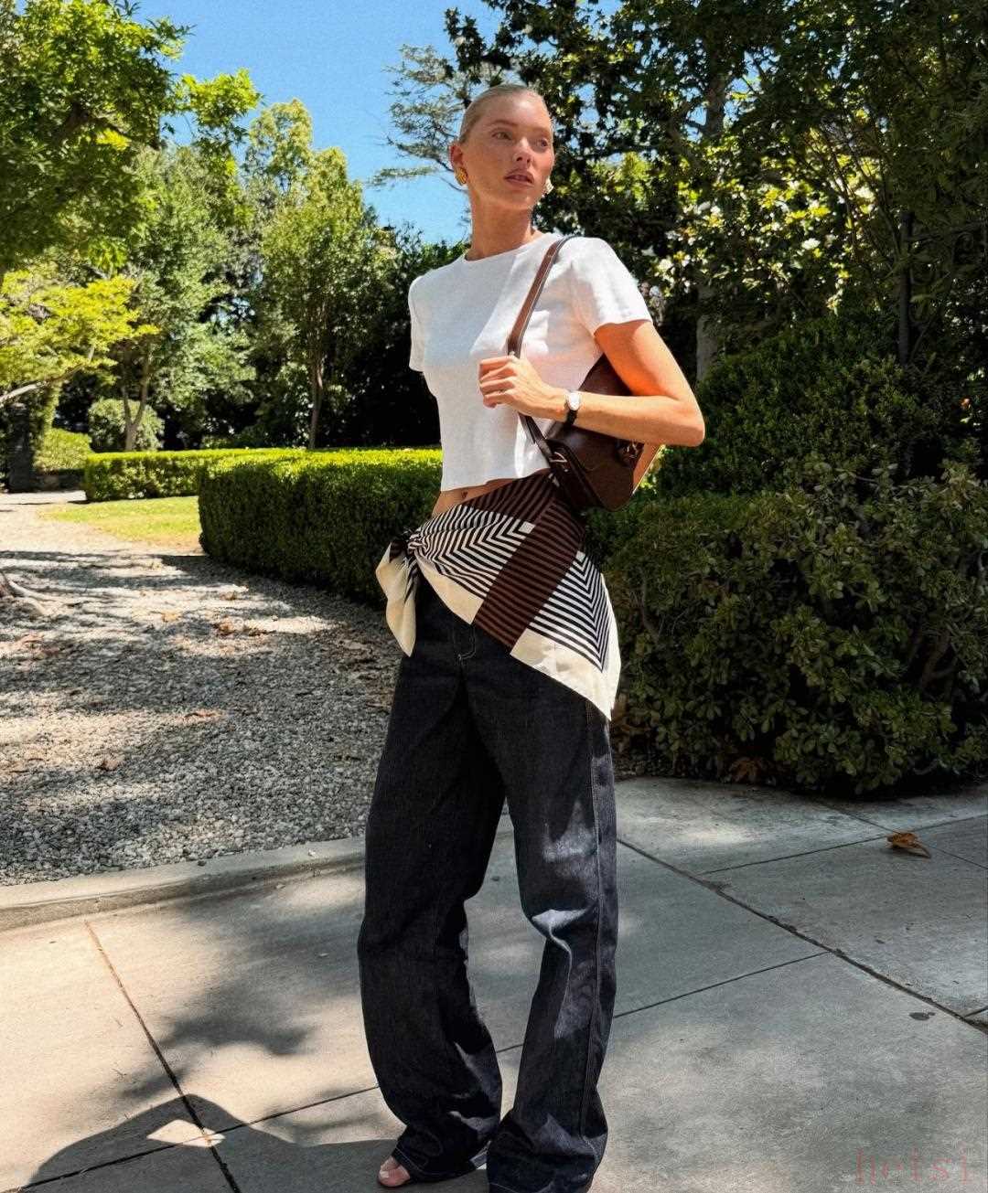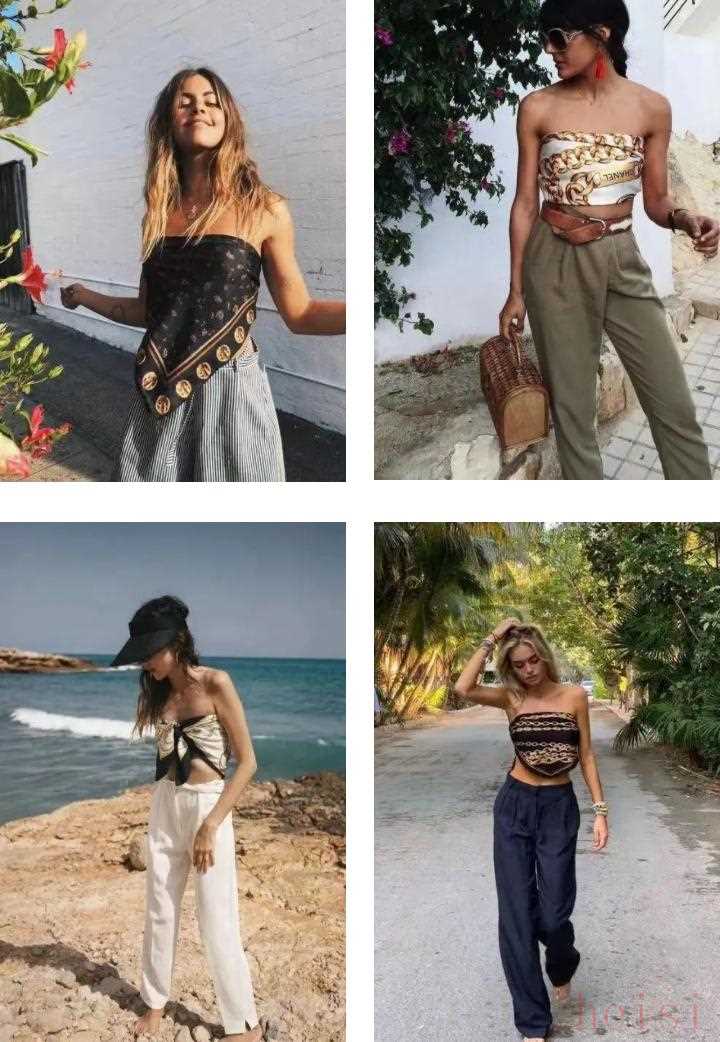 更大膽些,直接把絲巾當(dāng)衣服穿。掛脖式勾勒肩頸線條,一字肩藏住小贅肉,配條牛仔褲或短裙,就能時(shí)髦出街。
