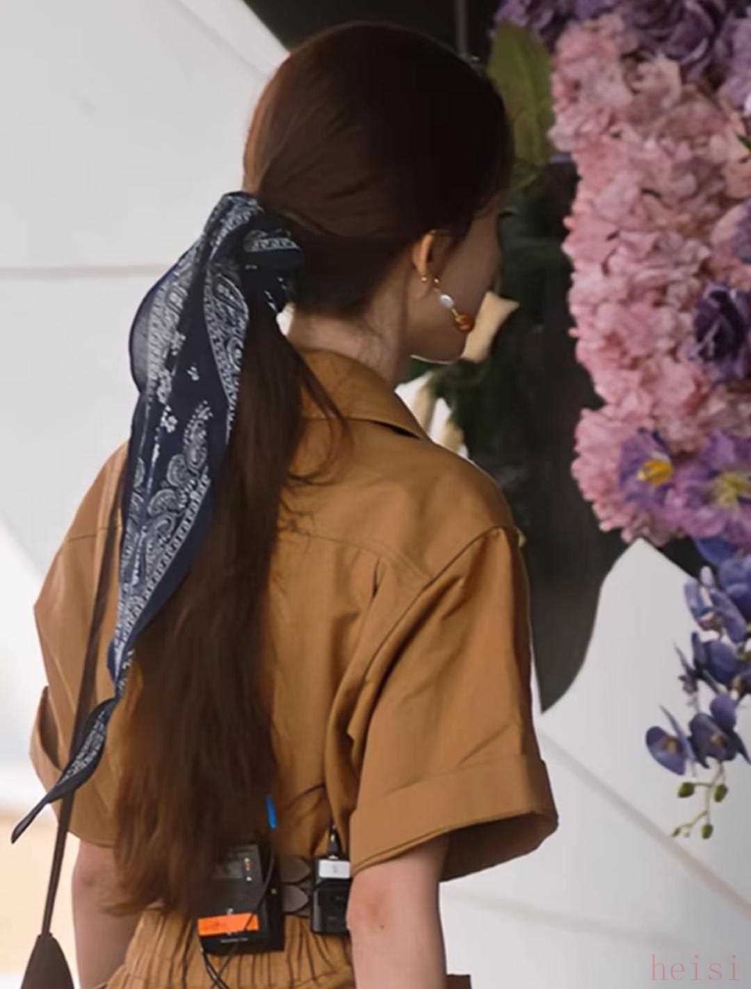別讓它規(guī)規(guī)矩矩地圈在頸間做保暖工具 —— 絲巾生來就是為浪漫而生的。不如把它隨意別在西裝紐扣間,或是松松卡在發(fā)帶里,任邊角隨秋風(fēng)輕拂,那姿態(tài),比落葉還瀟灑。