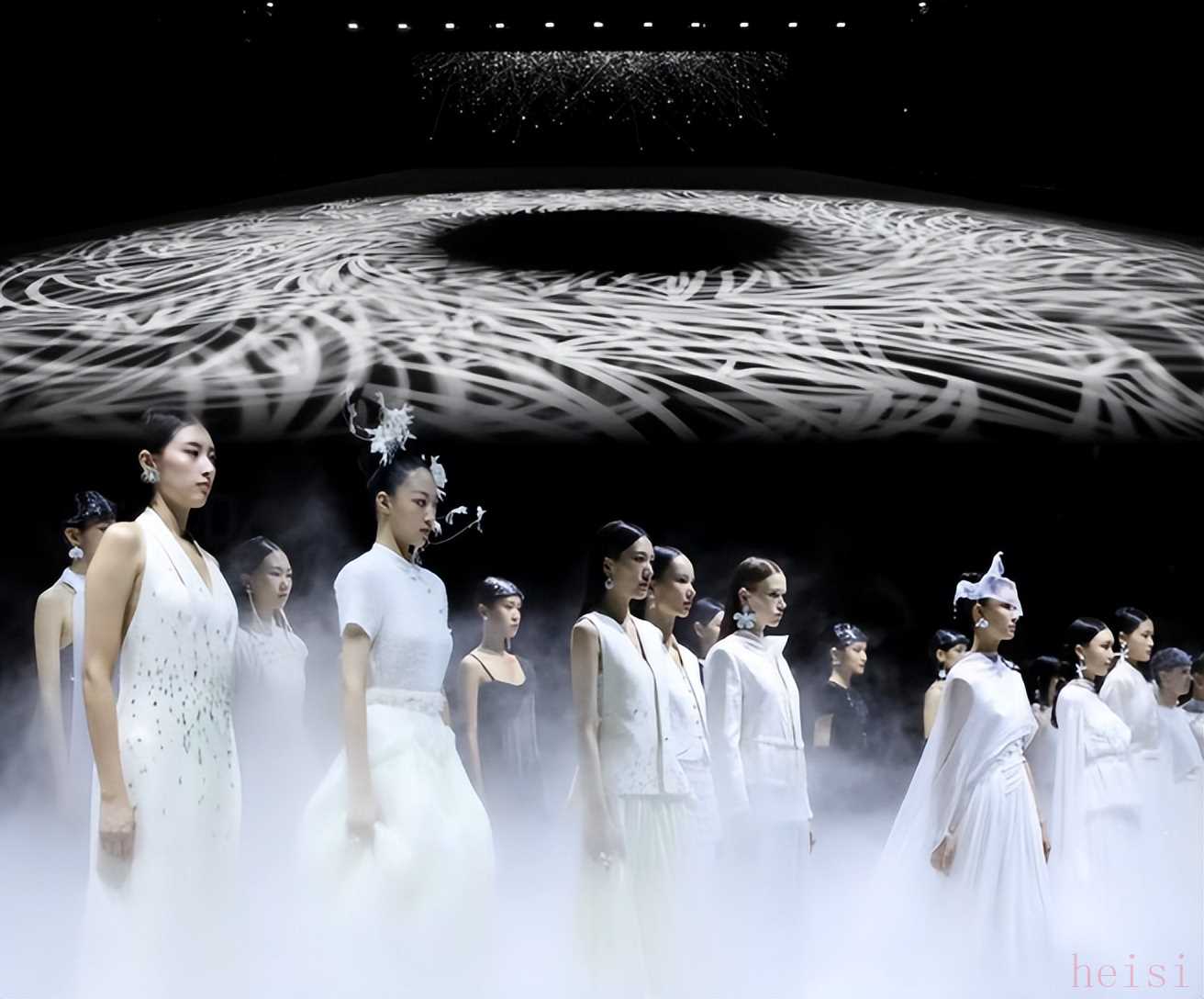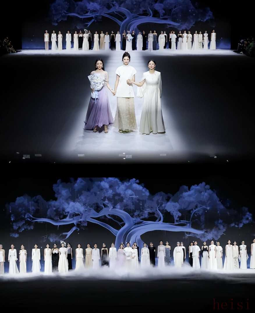 在整場(chǎng)秀中,品牌以白色締造了絕對(duì)安靜的環(huán)境,從白色的有限中觀察到世界無(wú)限運(yùn)動(dòng)的狀態(tài),從簡(jiǎn)單到復(fù)雜,再到去魅之后的真實(shí)。NUNU NONO“白上之白"以白色為始,從宇宙的浩瀚無(wú)垠之中誕生萬(wàn)物,順應(yīng)自然,呼應(yīng)“無(wú)為”的思想哲學(xué)核心——順應(yīng)自然規(guī)律。而后以大樹為背景致敬自然之美,將東方文化的精神核心通過傳統(tǒng)廣繡工藝躍然服裝表達(dá)之上,在場(chǎng)所有時(shí)尚人士、明星、各國(guó)使節(jié)夫人們無(wú)一不為其矚目。NUNU NONO還巧妙布局秀場(chǎng),通過音樂、薄霧光影、色彩變化等,講述關(guān)于人生“看山是山”“看山不是山”到“看山還是山”三重境界的故事,營(yíng)造了一個(gè)充滿詩(shī)意與哲思的秀場(chǎng)氛圍。整個(gè)系列仿佛一場(chǎng)關(guān)于生命、自然與文化的對(duì)話,引導(dǎo)觀眾在視覺與心靈的雙重震撼中,重新審視東方美學(xué)的獨(dú)特價(jià)值。