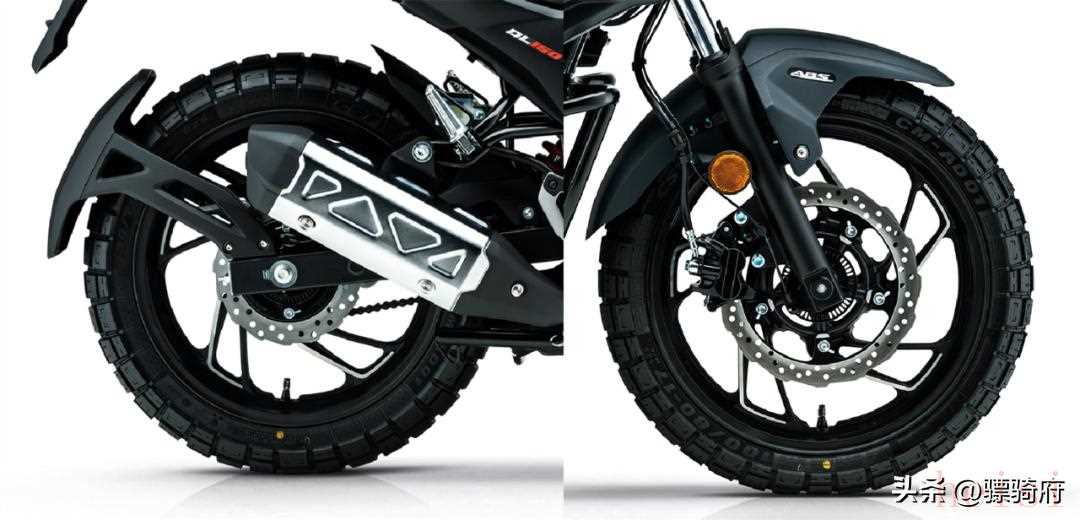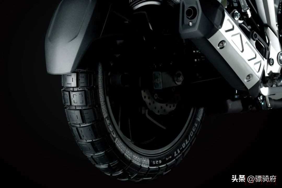 這是一款小排量城市休旅車,除了會在鋪裝路面上行駛,也可能會遭遇到非鋪裝路段,因此DL150配置的是CST品牌的全地形大花塊輪胎。