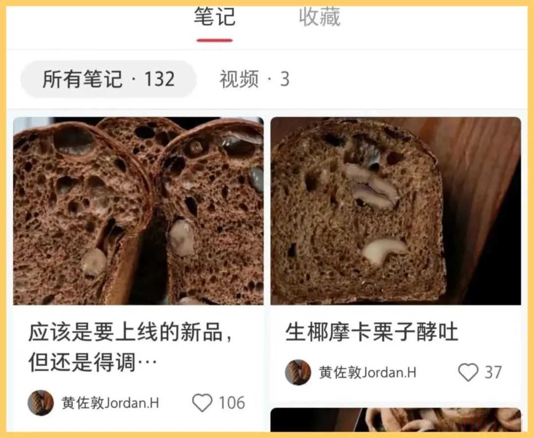 主理人的小紅書(shū),每天都是在做面包和研發(fā)新面包,真的能感受他到對(duì)面包的極大熱情。